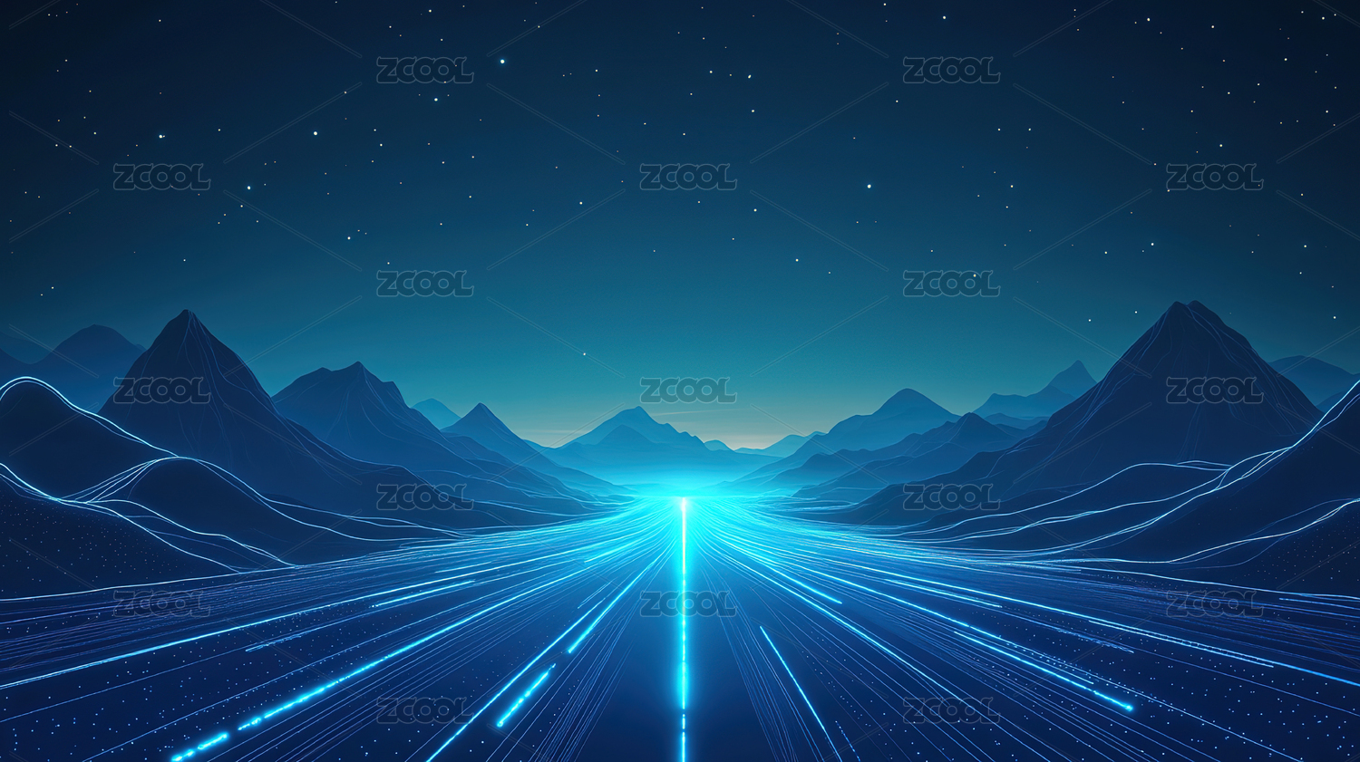 科技,3D,场景,风景,山水,渐变,蓝色,河流,自然,山