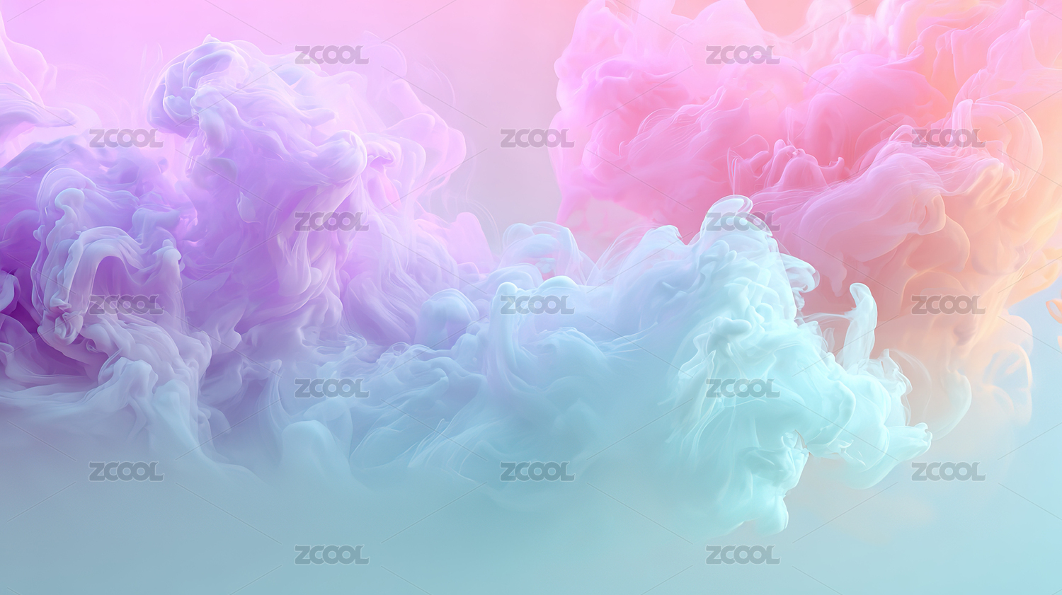 粉紫渐变流体云朵在浅蓝背景上呈现梦幻艺术