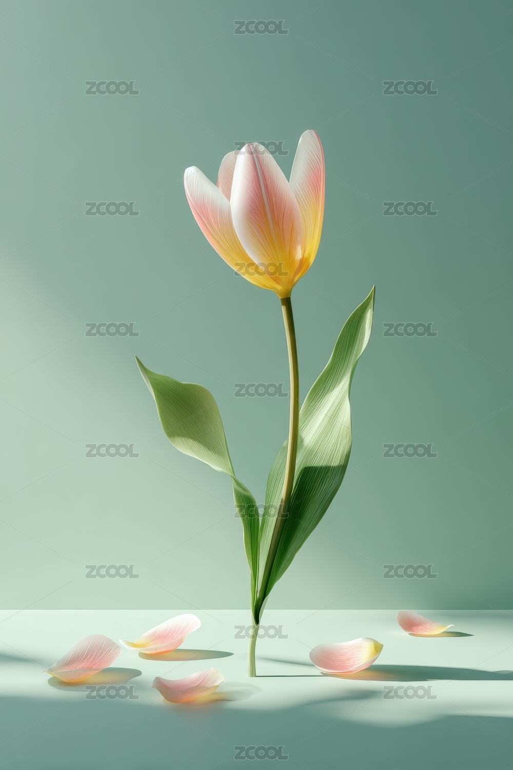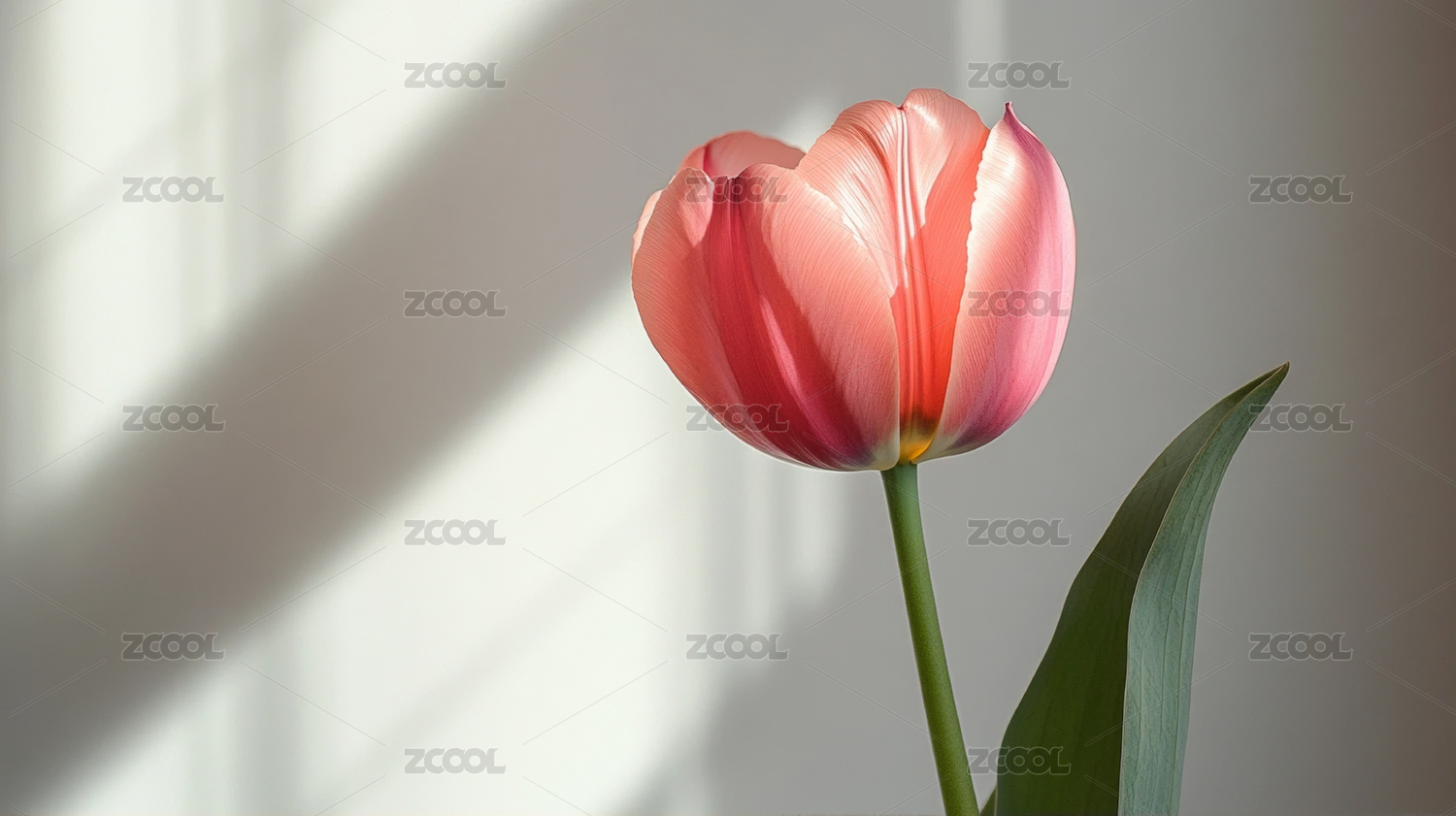 单茎郁金香在浅色背景中优雅绽放