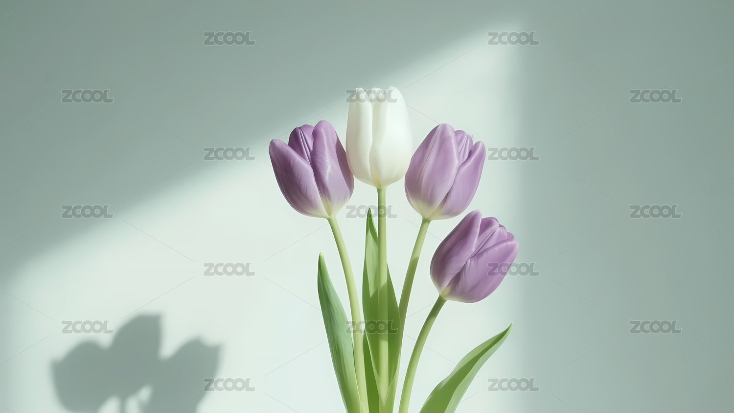 白紫郁金香窗前阳光