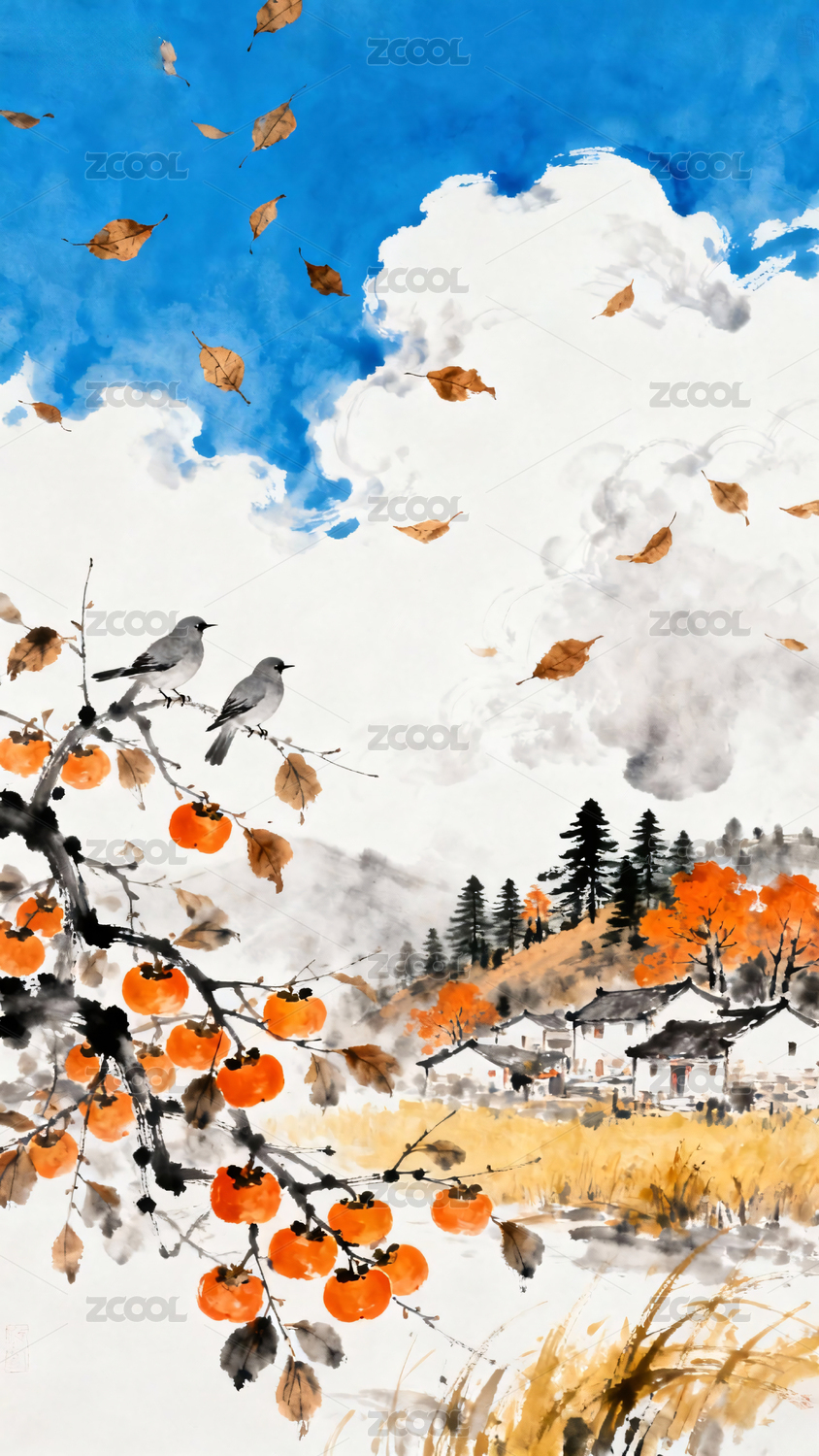 秋日枫林水墨画