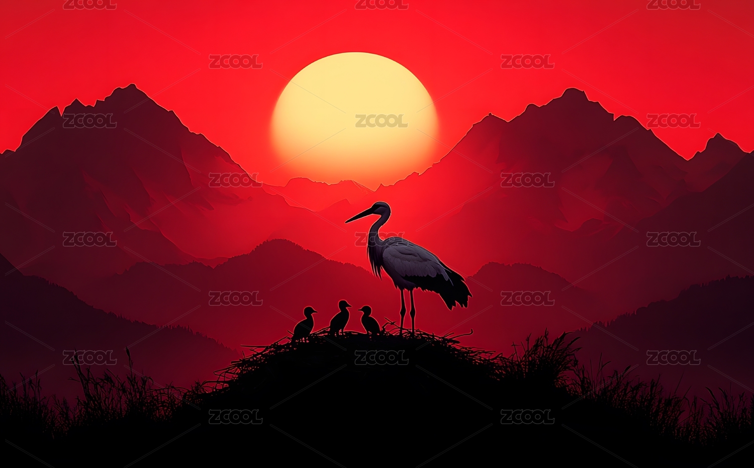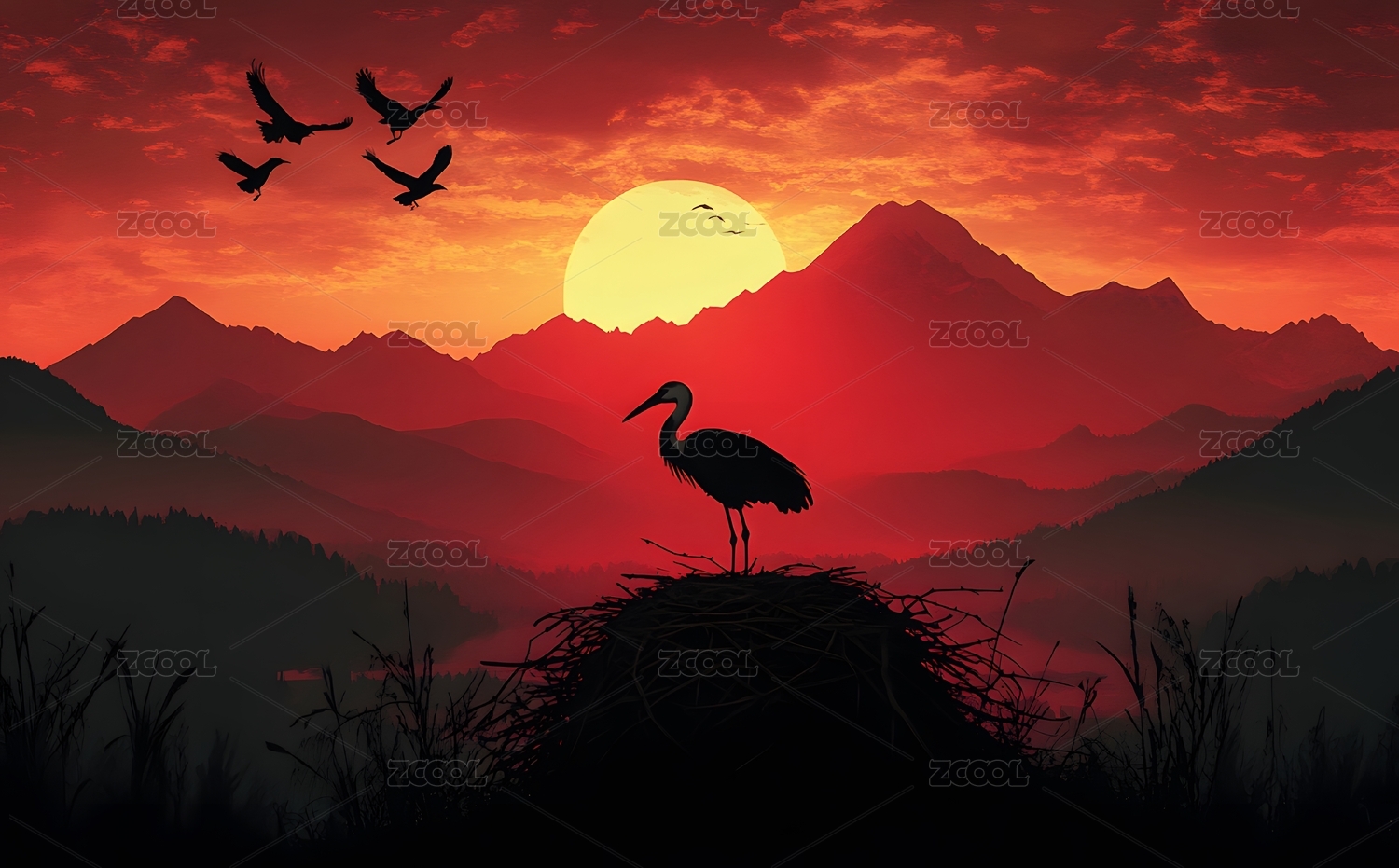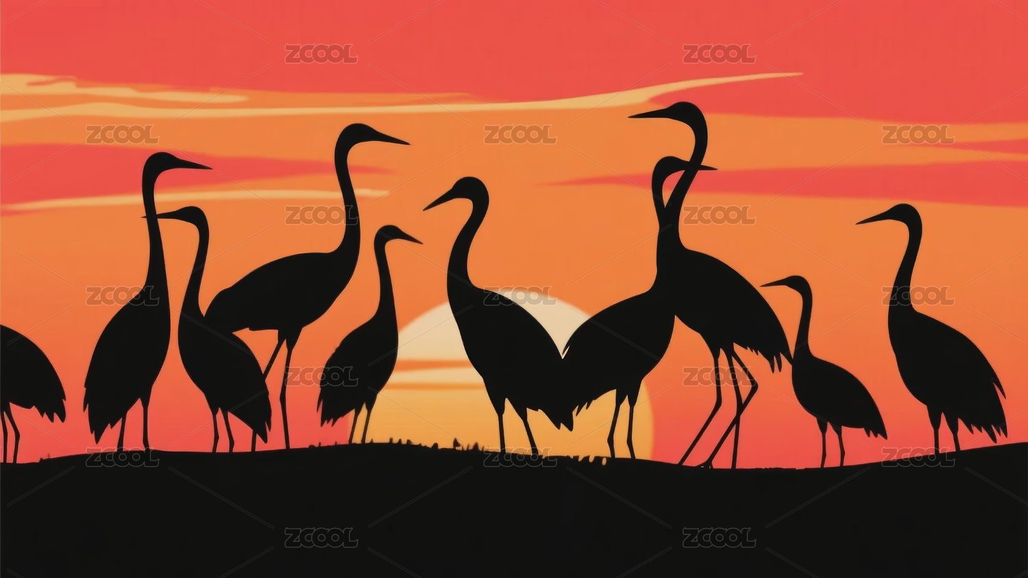 鹤,日落,剪影,草地,鸟类,自然,野生动物,黄昏,天空,云彩