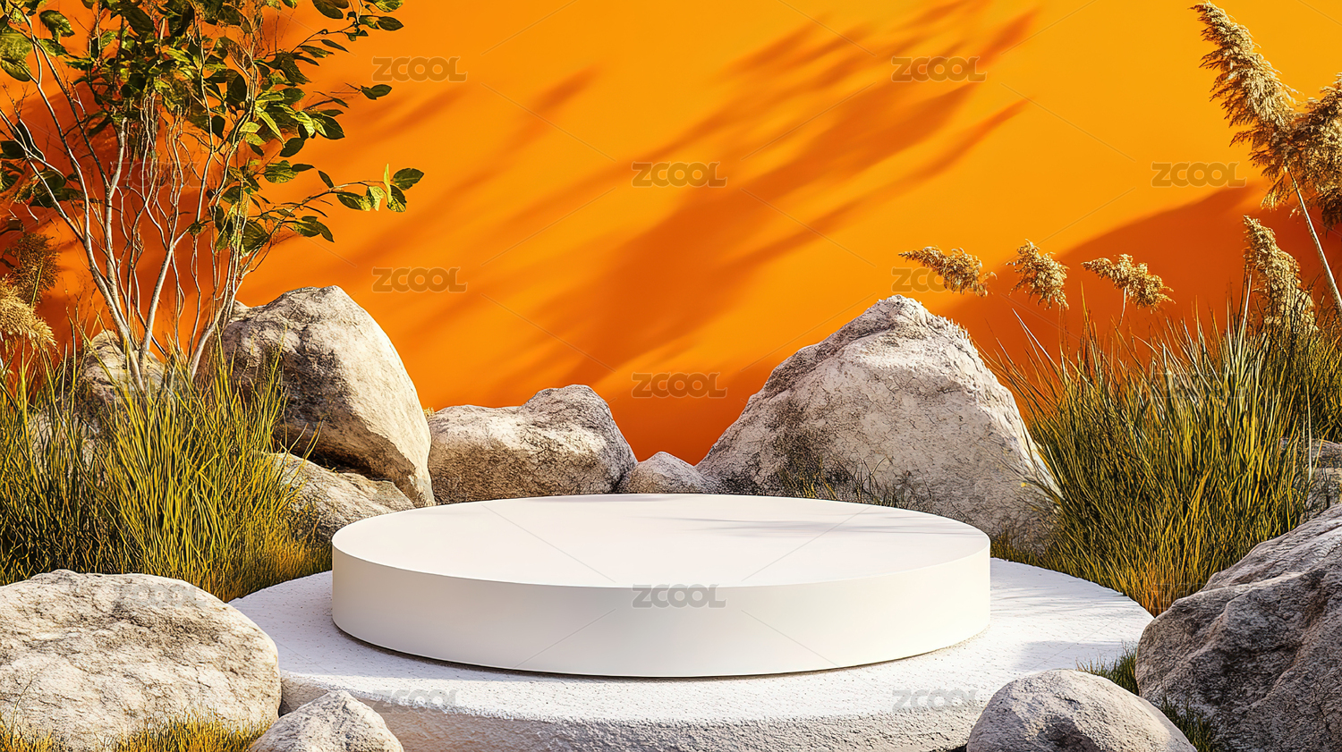 橘黄色,黄色,展台,电商,背景,植物,小清新