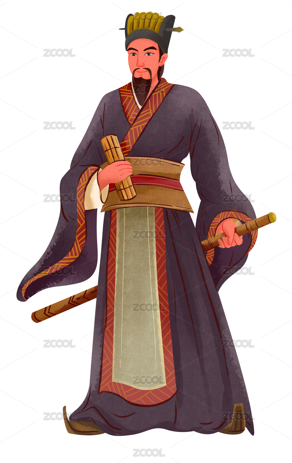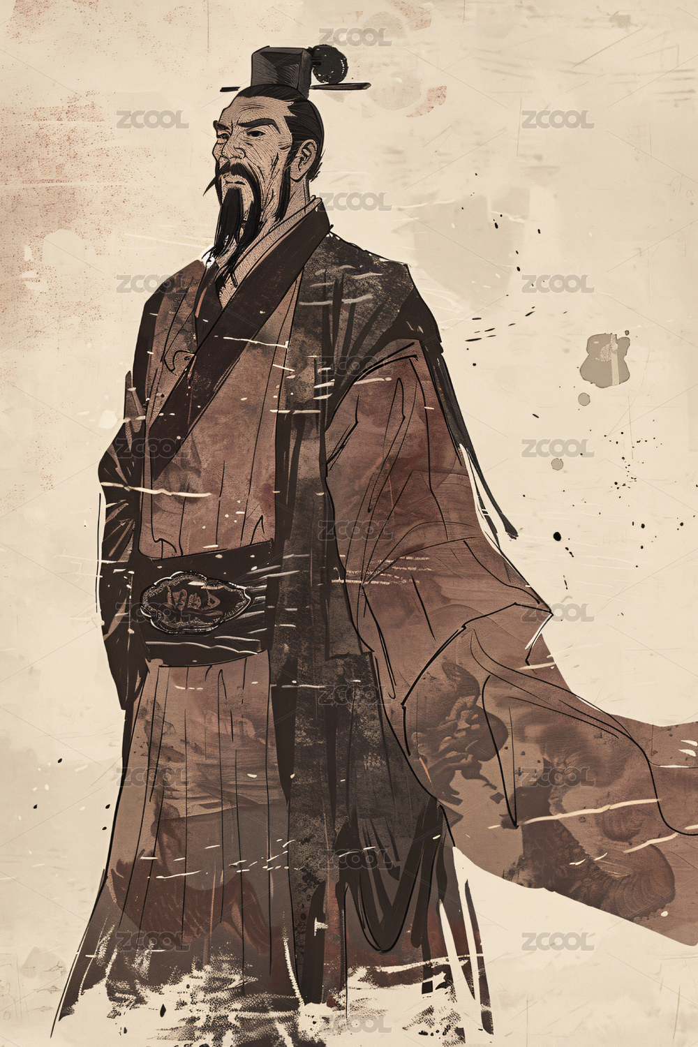中国风,人物,插画,国画,线描,工艺画,将军,威风,站立,全身像