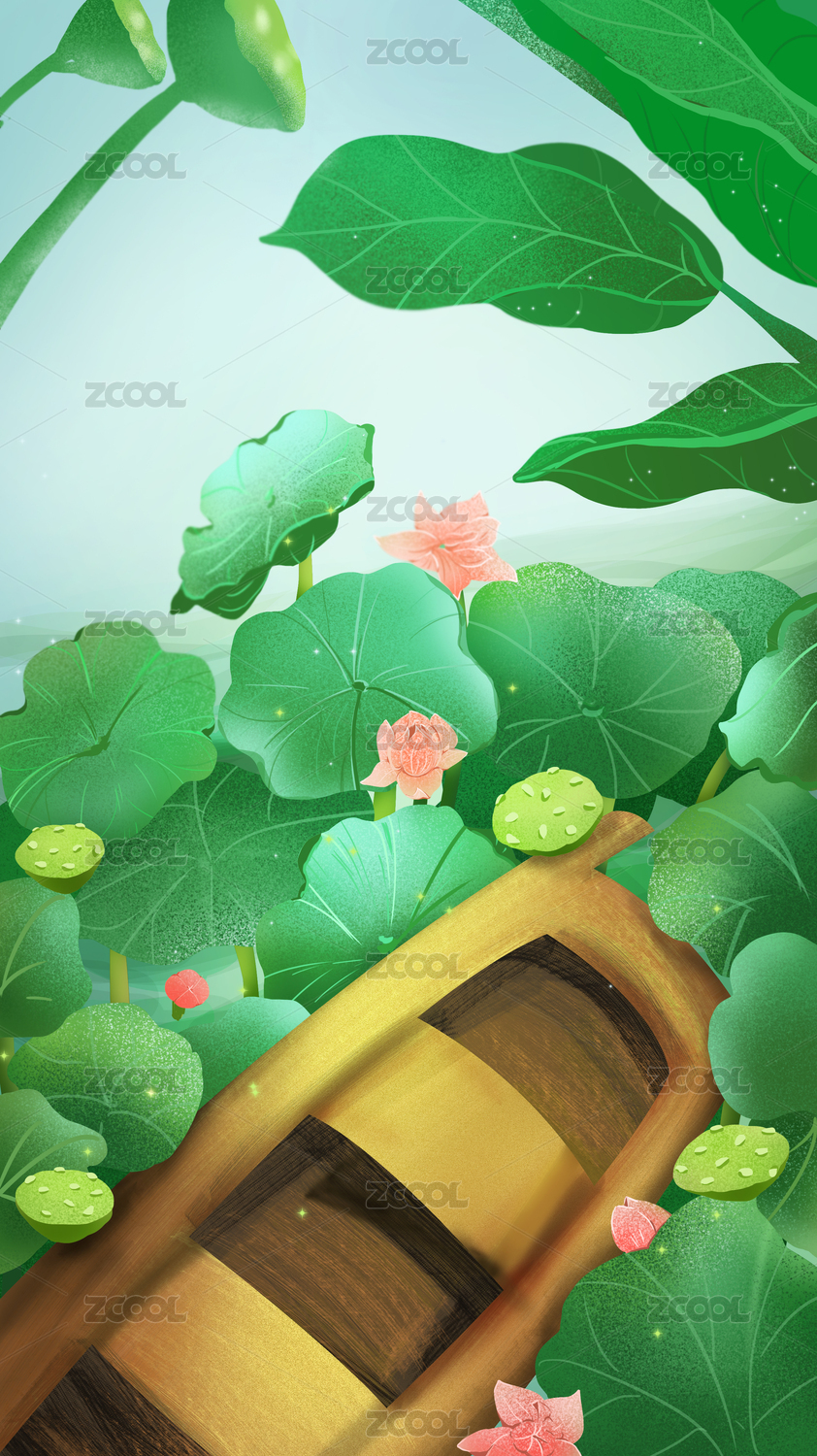 夏天,夏季,小暑,二十四节气,节气,荷塘,荷叶,莲蓬,绘本,插画