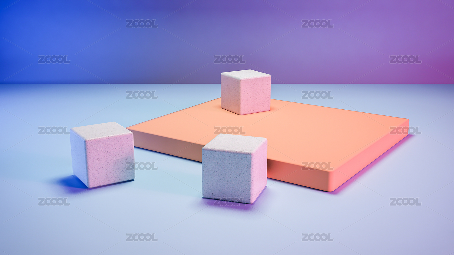 粉紫渐变白色立方体
