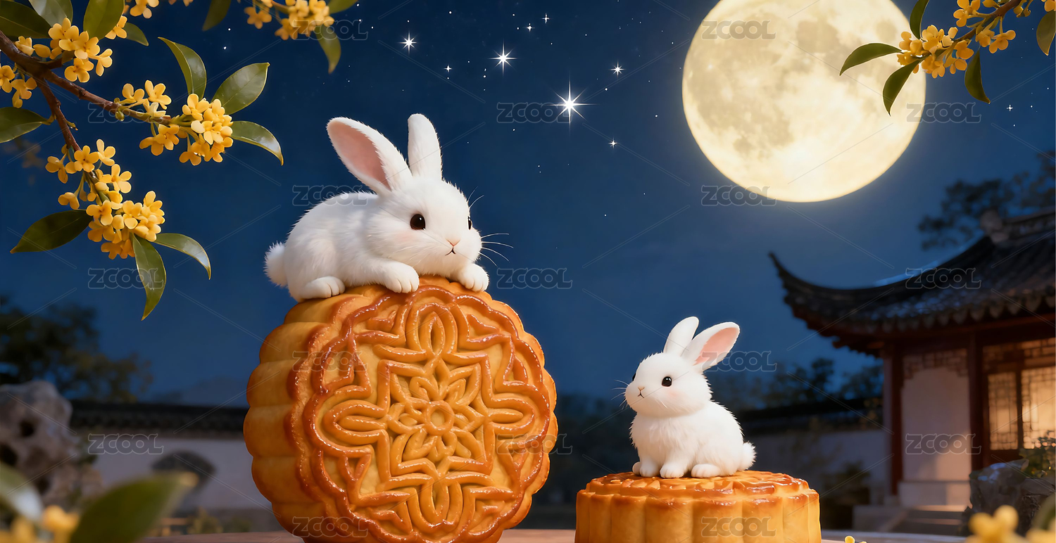 中秋月夜玉兔与月饼