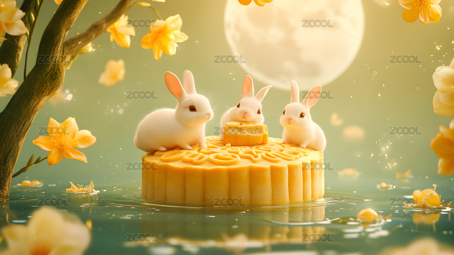 中秋节3D月饼兔子背景