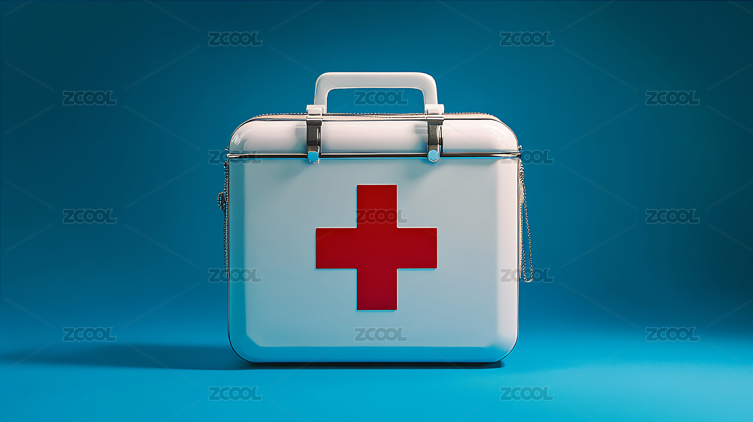 医疗急救箱与蓝色背景 三维渲染
