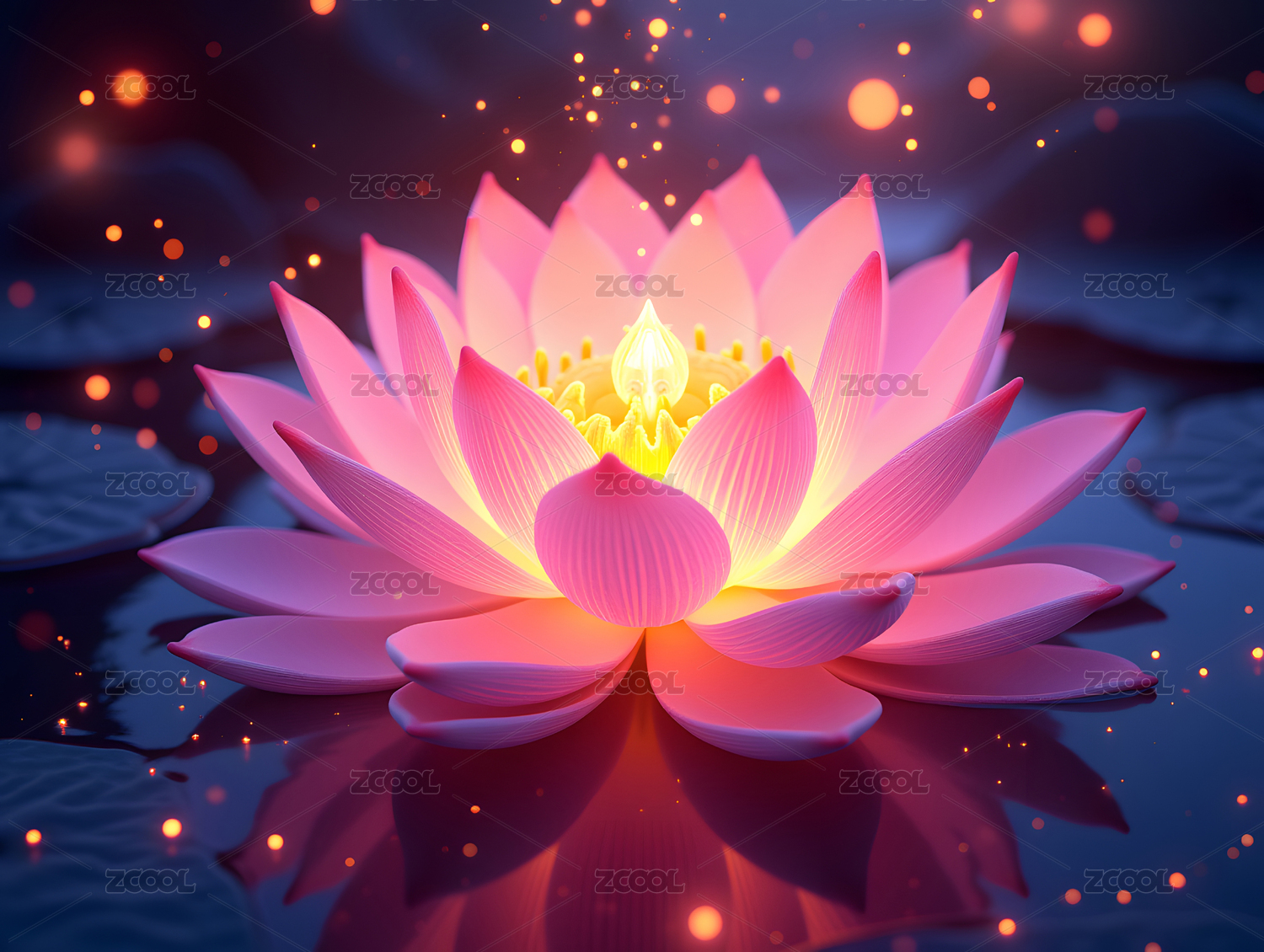发光的荷花三维渲染场景插图