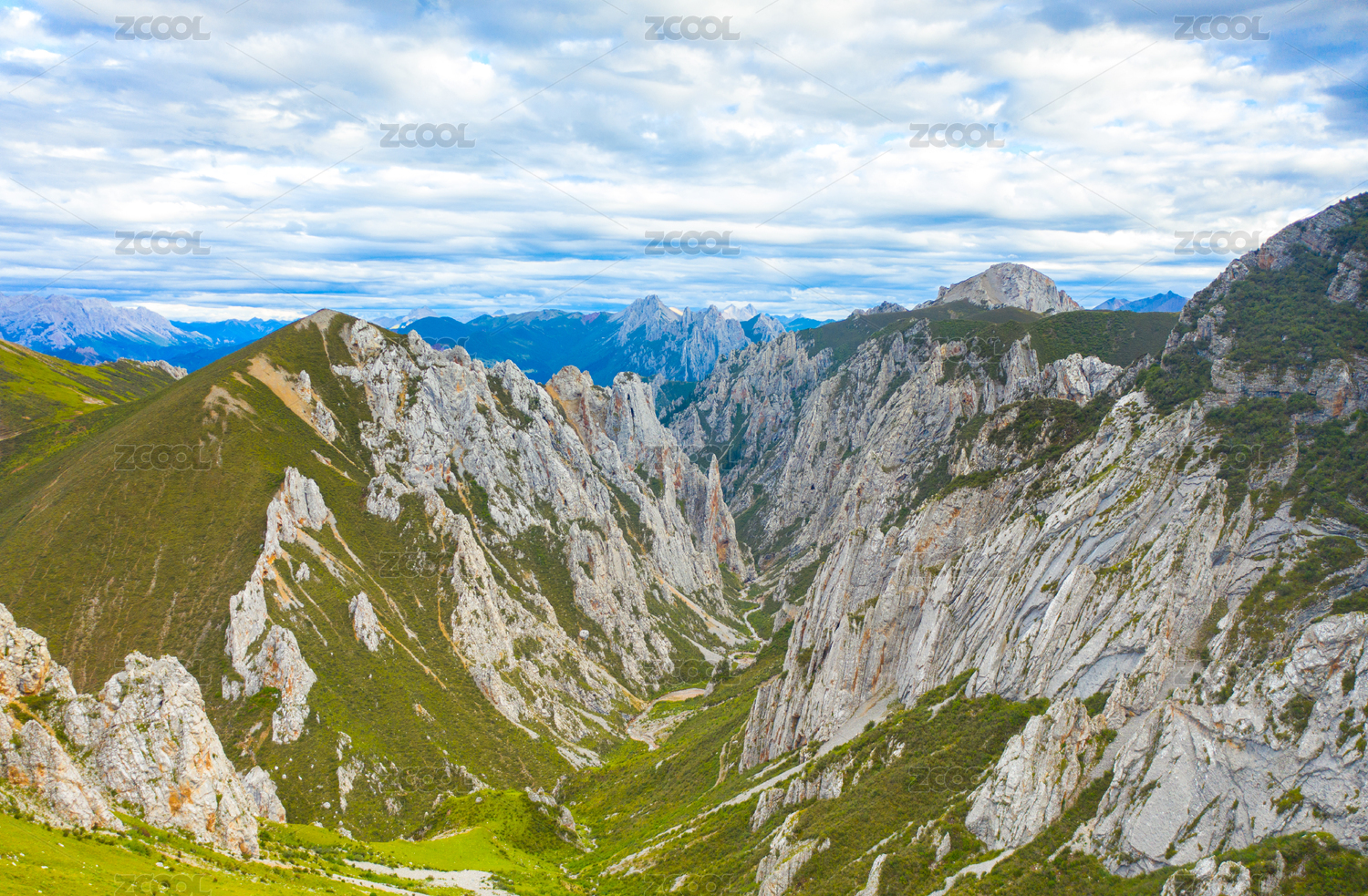 甘南洛克之路险峻奇绝山脉峡谷绿色草地