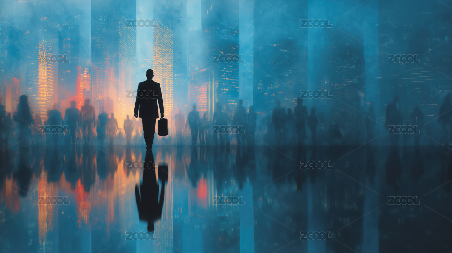都市黄昏街景人群剪影