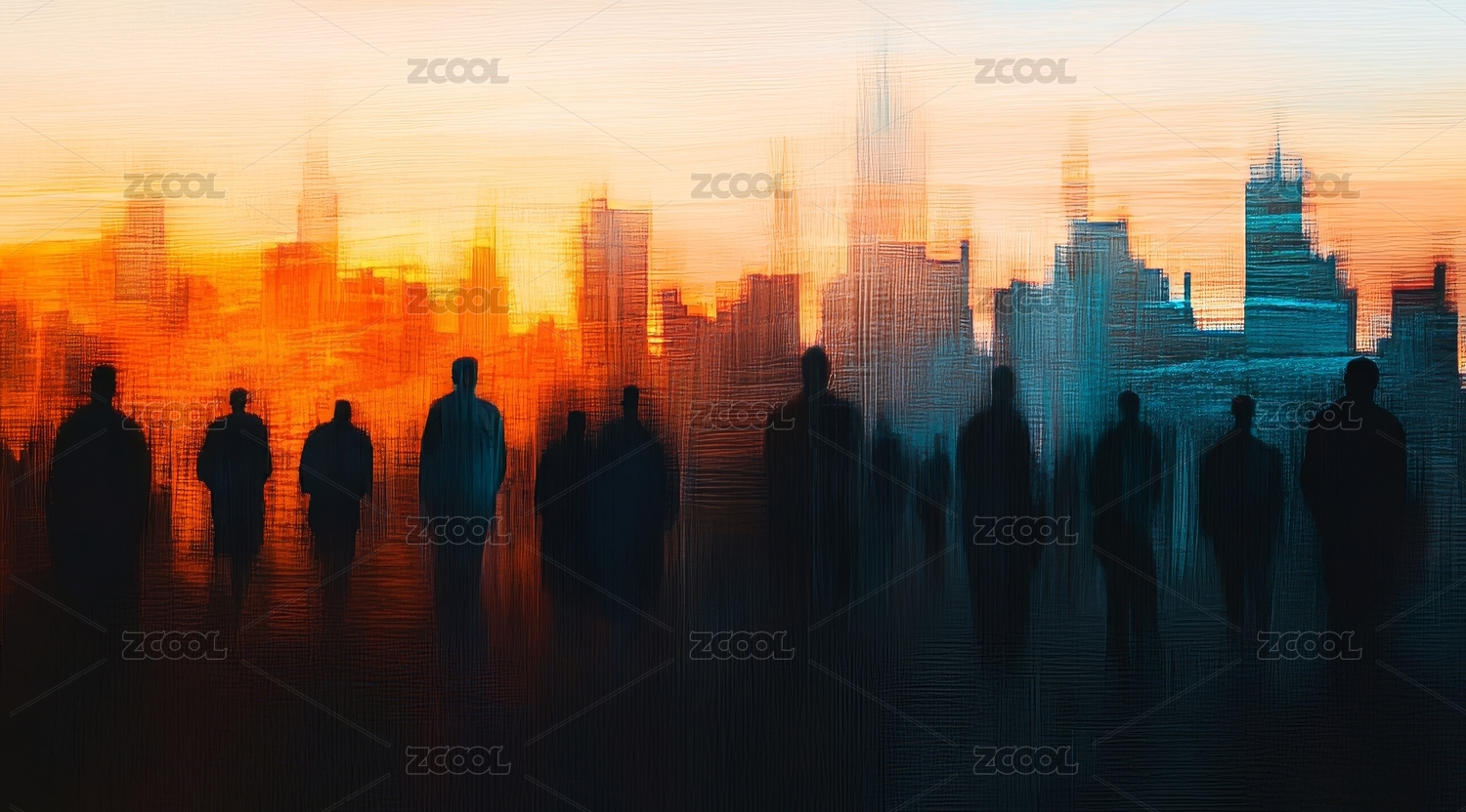七彩,色调,人物,剪影,人潮,前行,朦胧,模糊,创意
