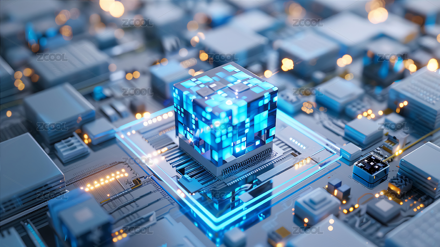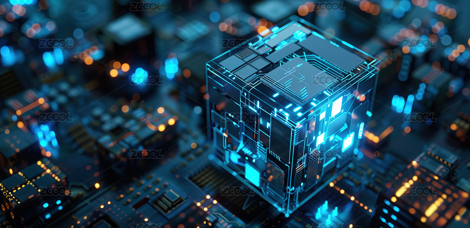 数字,影像,科技,芯片,蓝色,水晶,数据,透明,背景,插图