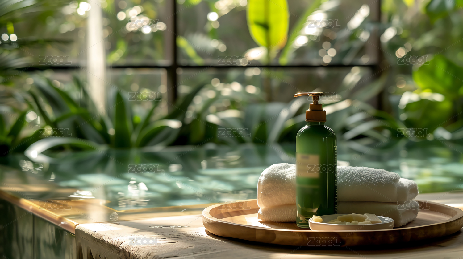 护肤,空瓶,产品,展示,场景,植物,阳光,静物