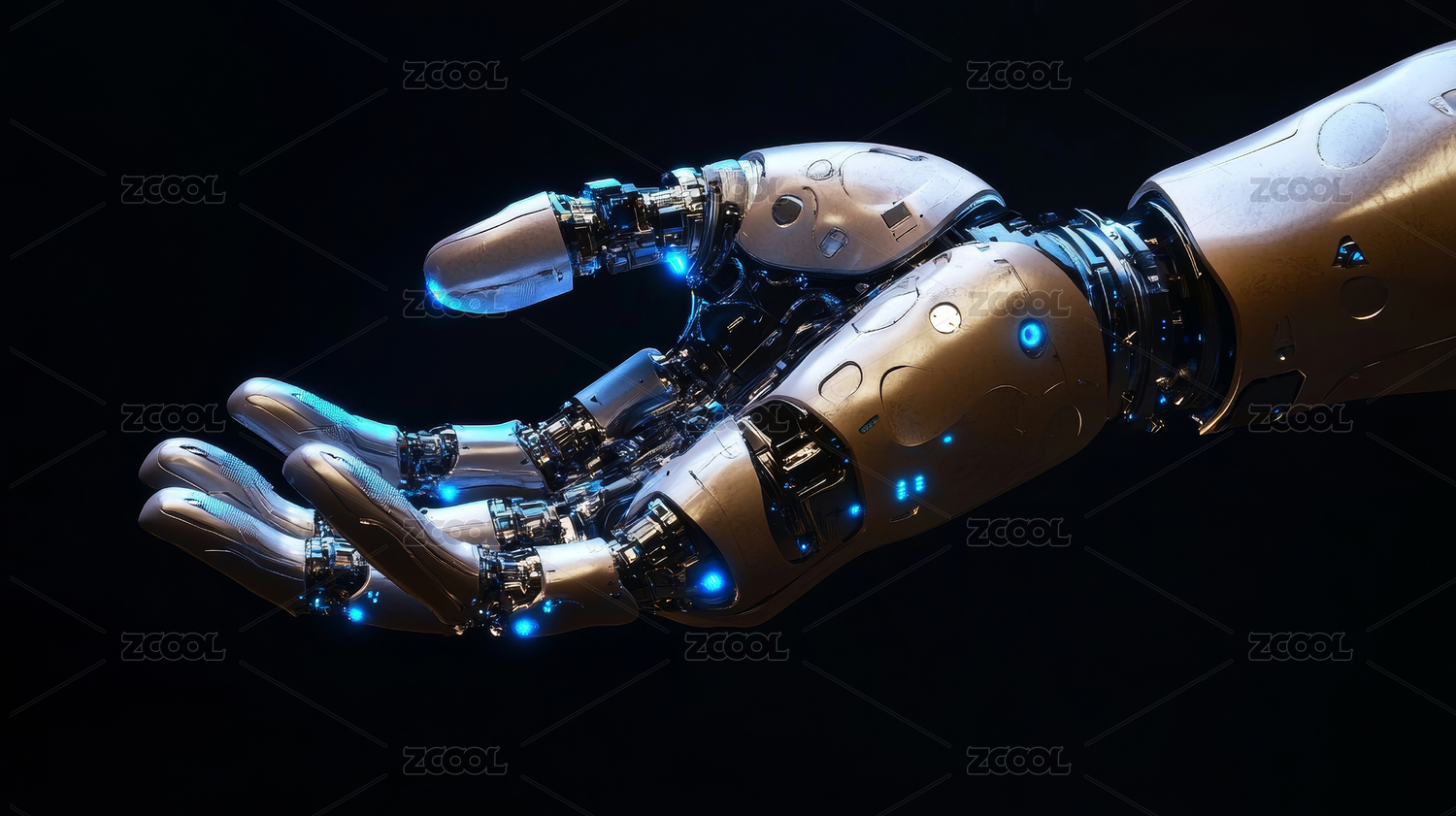 科技,智能,机器人,手臂,指向,前方,蓝色,背景,数字,影像