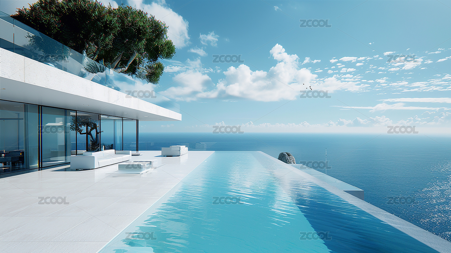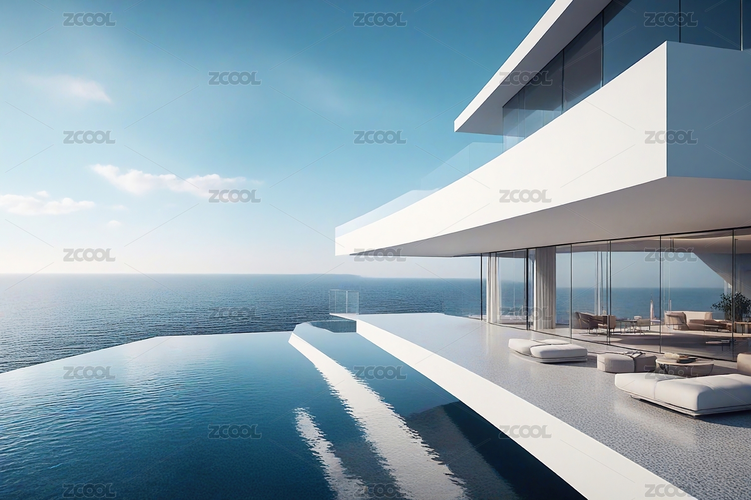 场景,3d,渲染,建筑,抽象,曲线,空间,空旷,海洋,水
