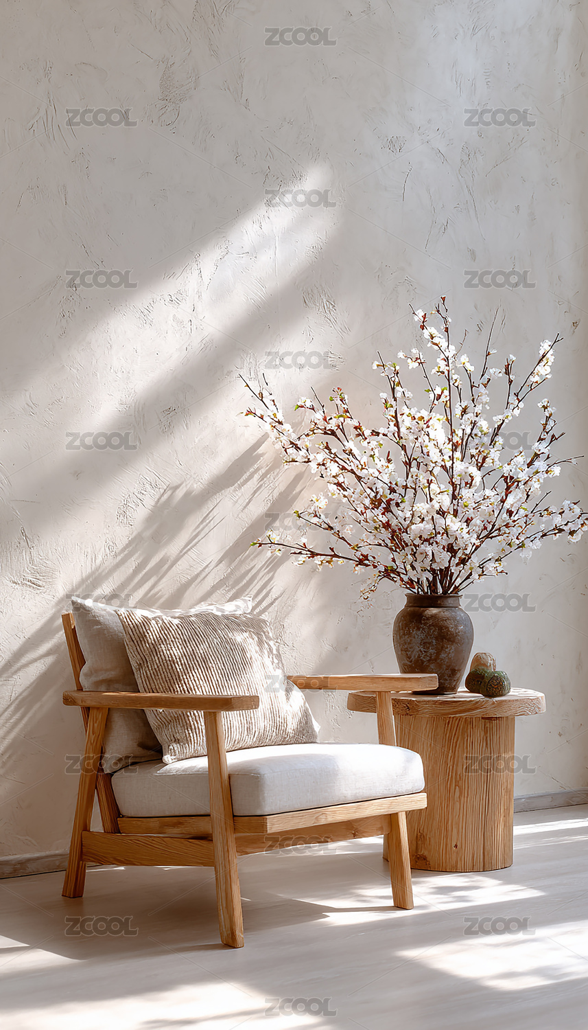 现代,建筑,建筑内部,墙壁,水泥墙,灰色,罐子,花瓶,桌子,凳子