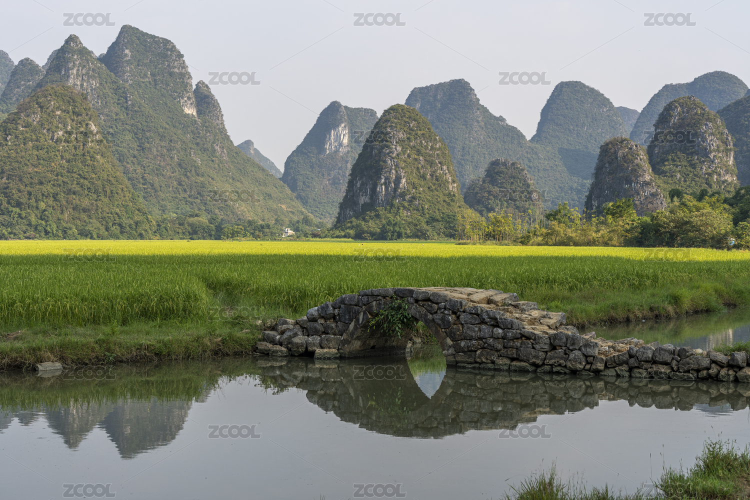 桂林山水田心村状元桥农田日出喀斯特地貌