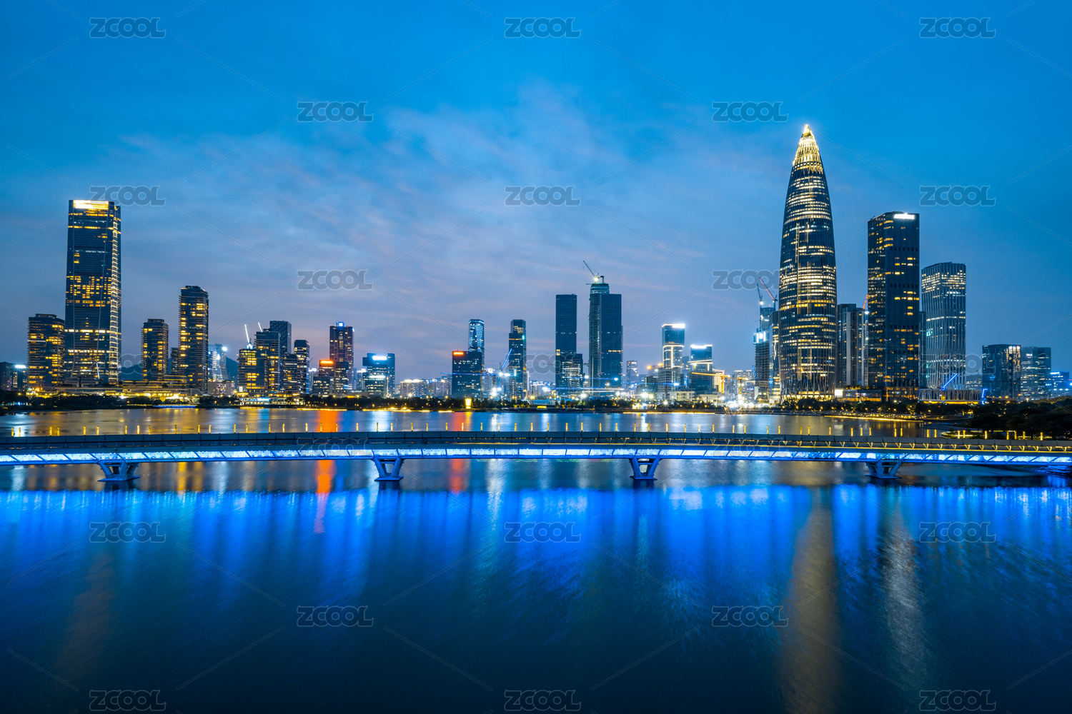 大都市区,天空,晚,蓝色,光,云,人类住区,摩天大楼,深圳,商务区