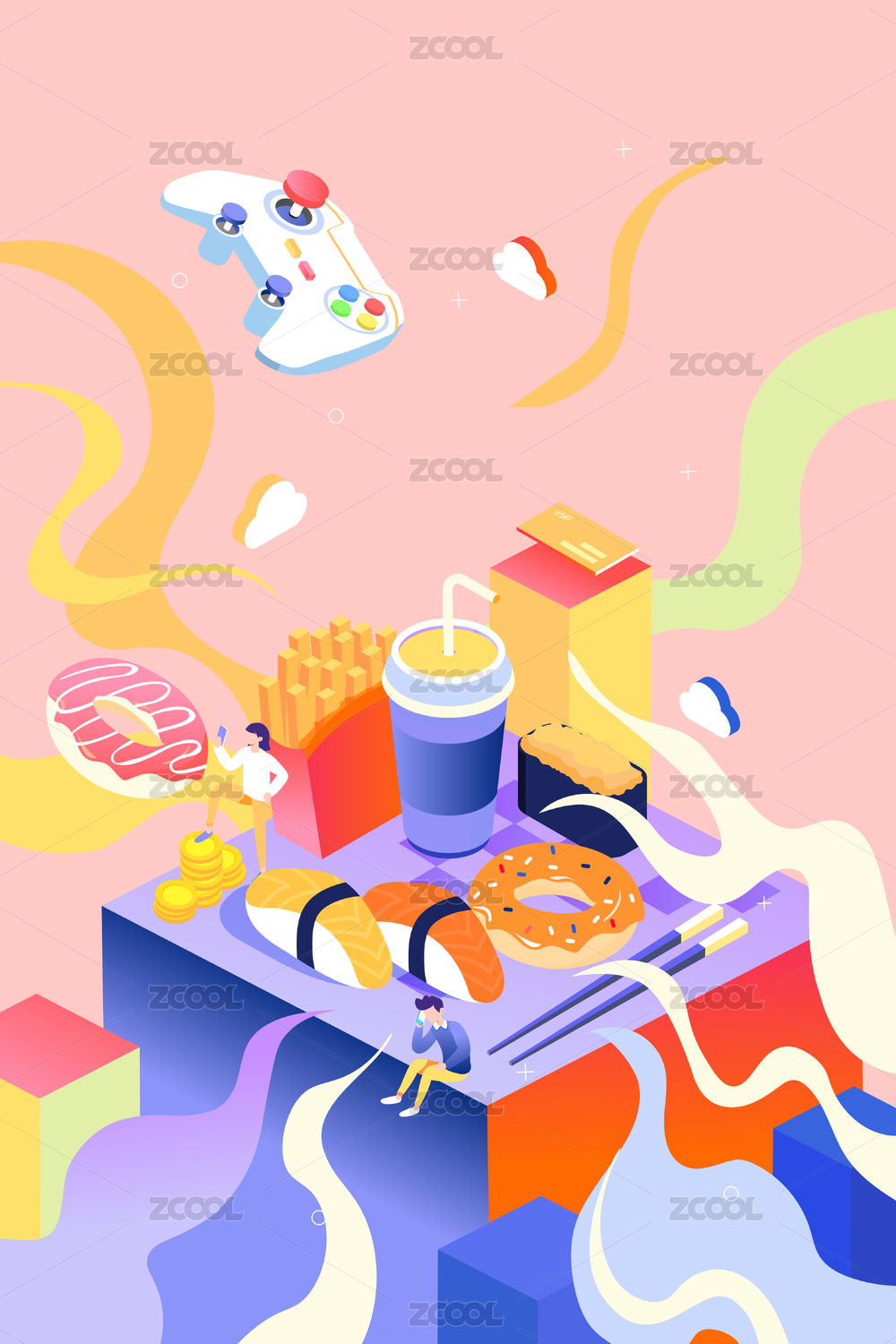 厨师蛋糕饮料烘培扁平运营插画启动页弹窗
