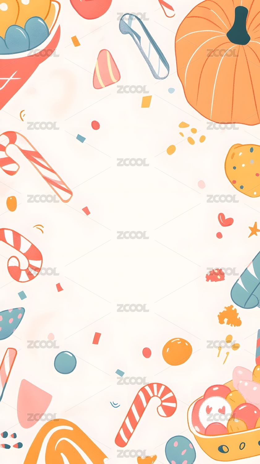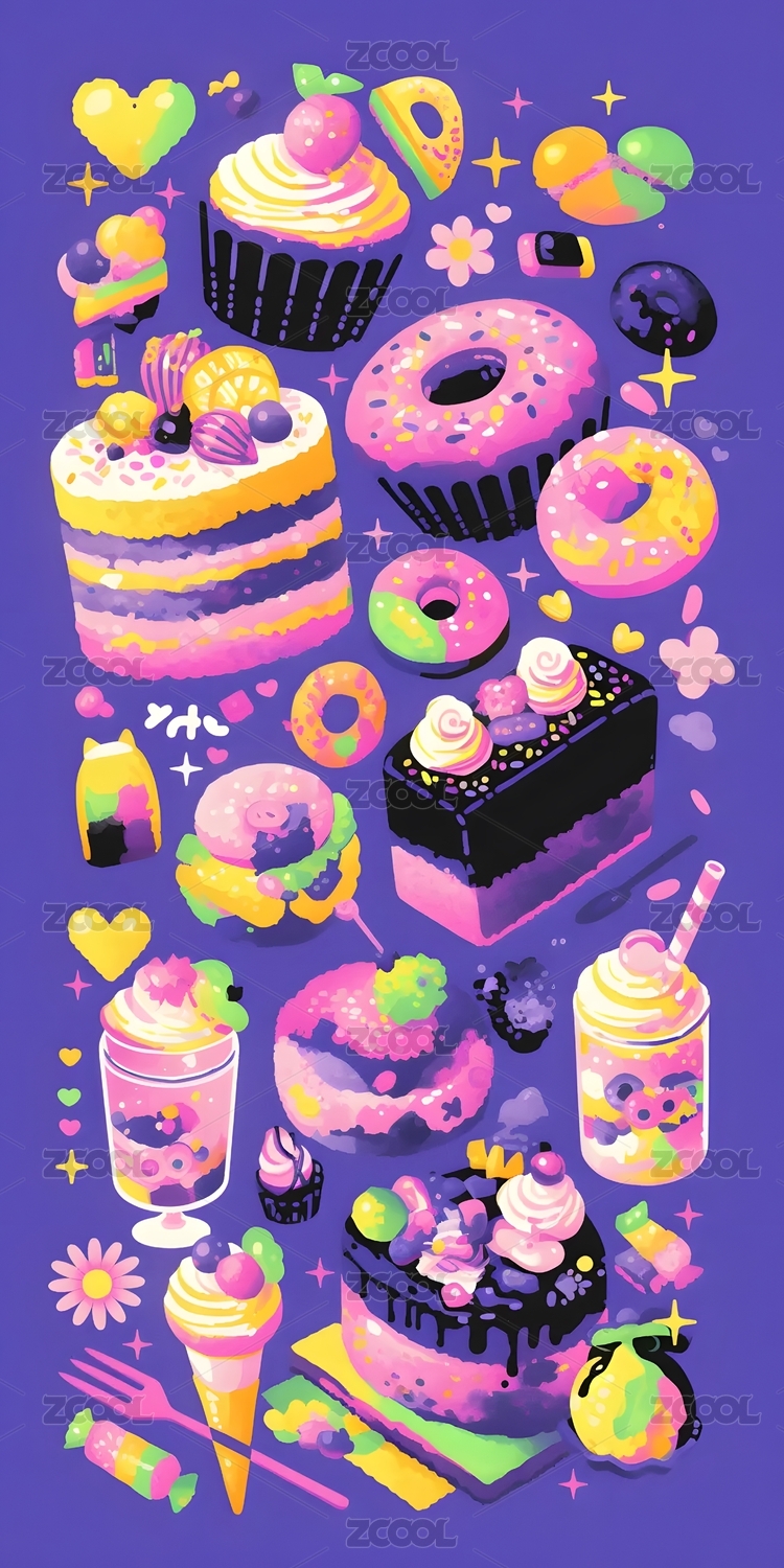 粉色女孩与冰激凌甜品矢量插画手机壁纸