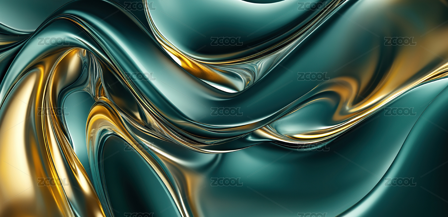 数码科技液态金属墨绿抽象图形海报网页背景
