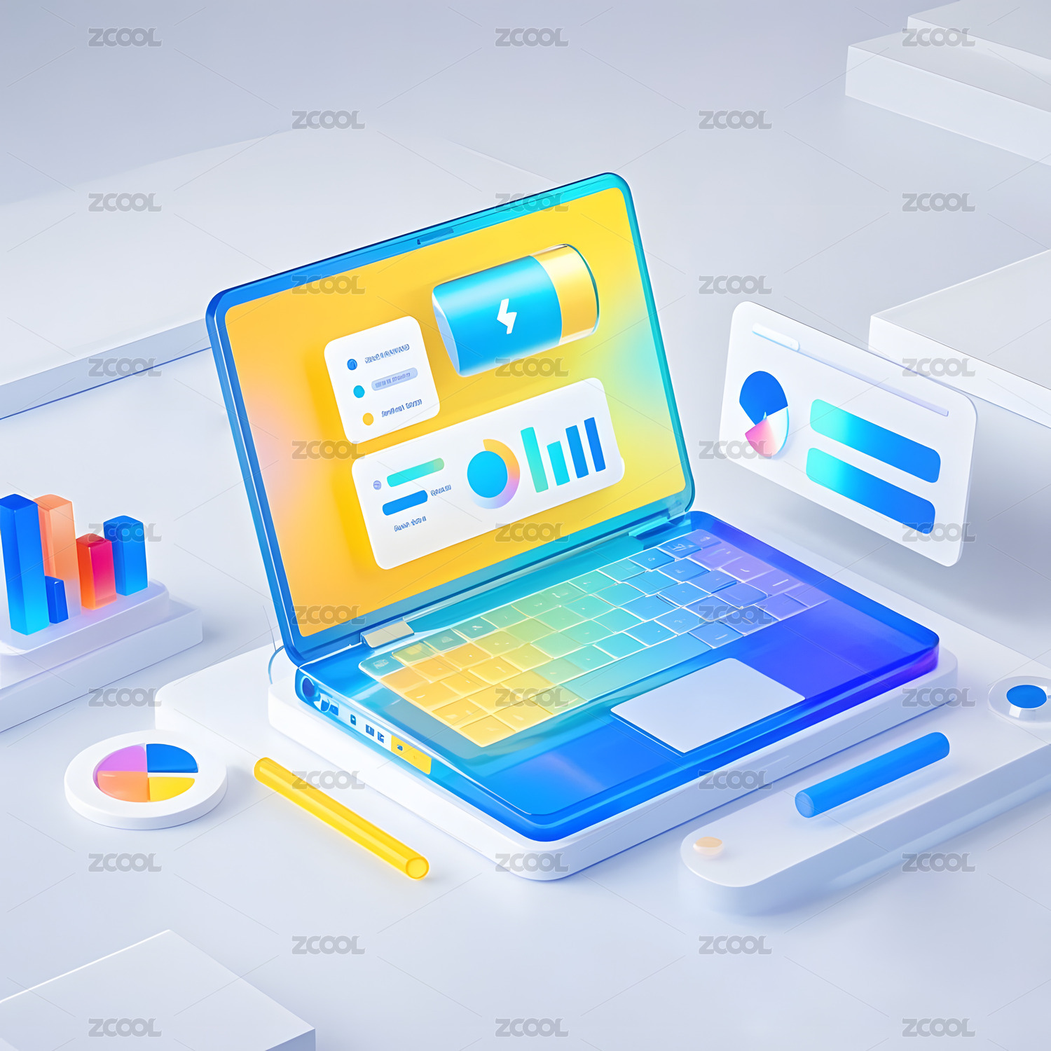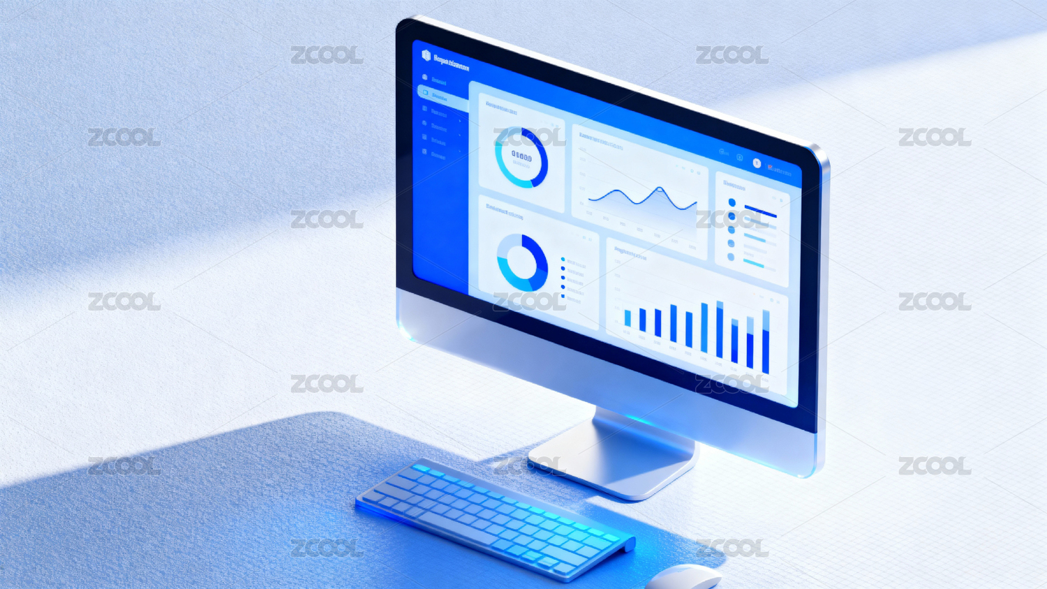 鼠标键盘显示器笔筒盆栽办公桌插画