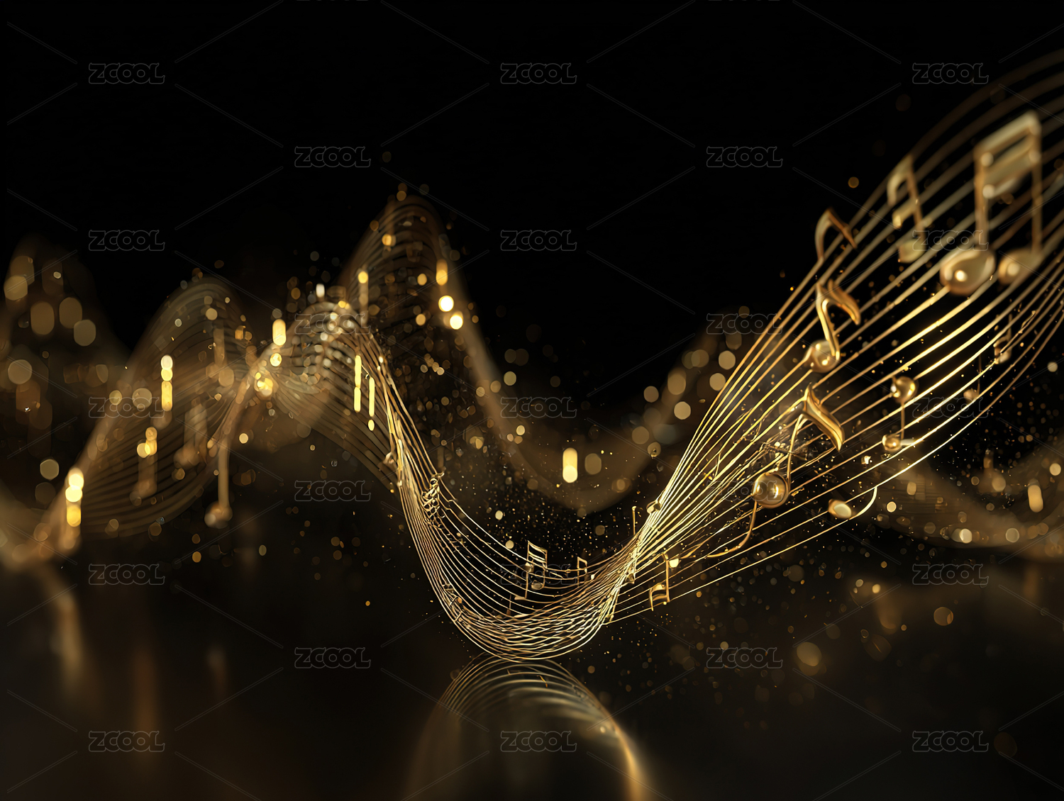 金色音符与波浪线条的抽象艺术