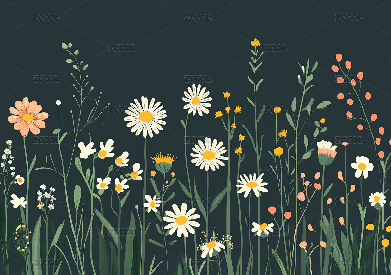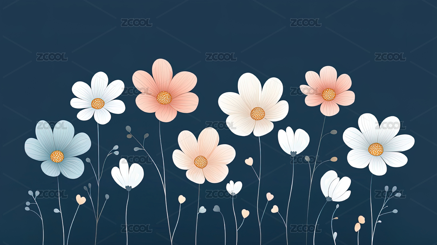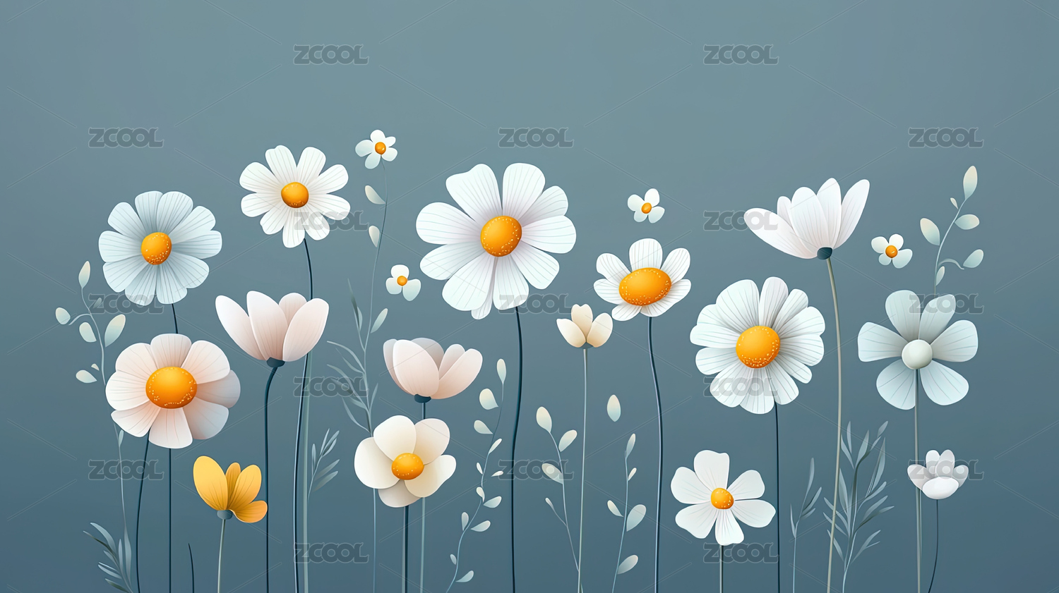 极简风格小雏菊鲜花背景壁纸
