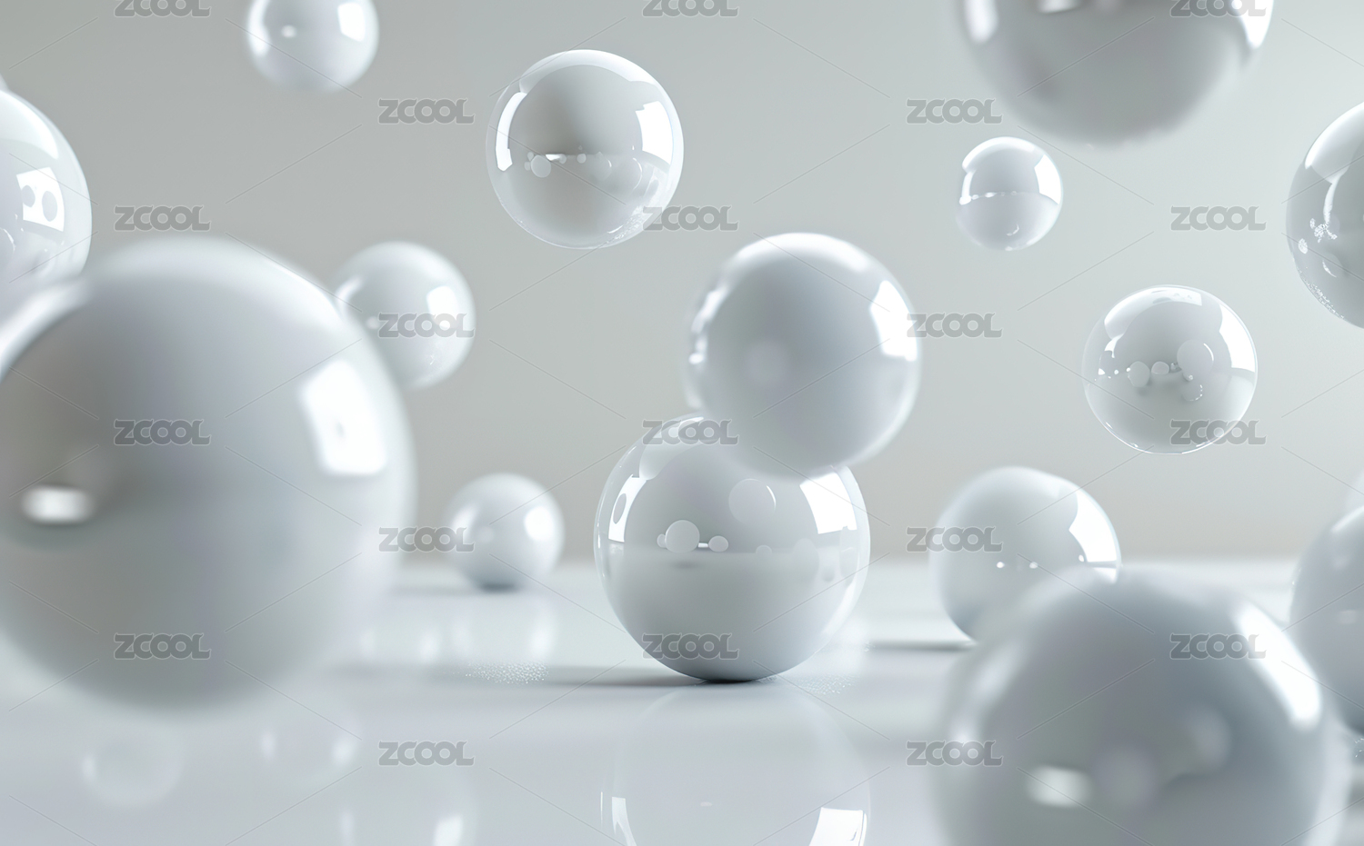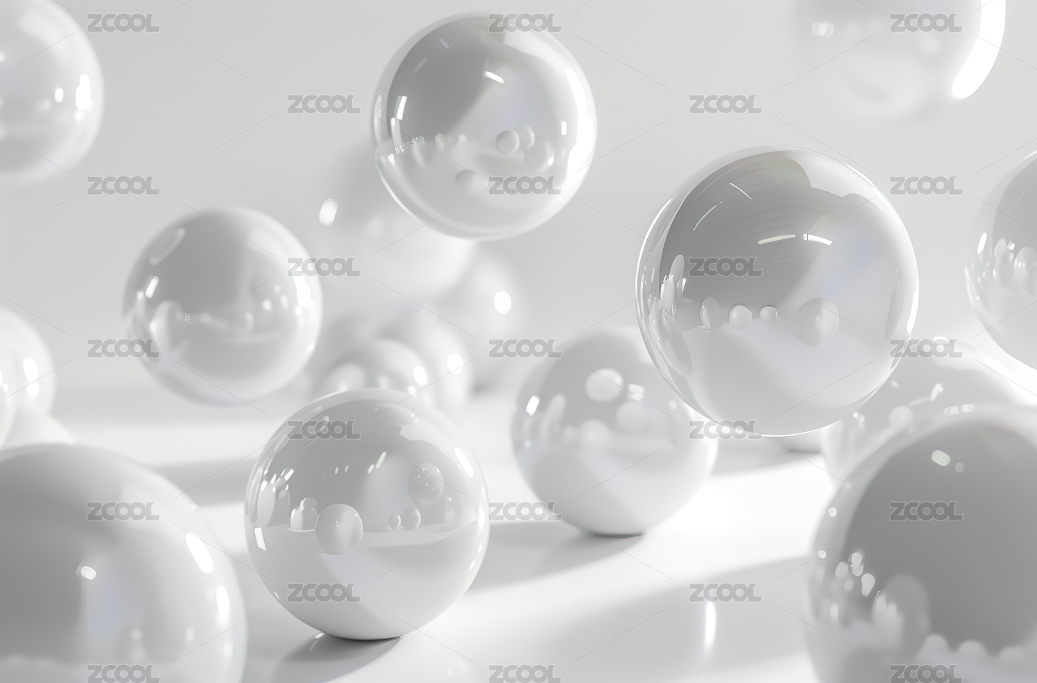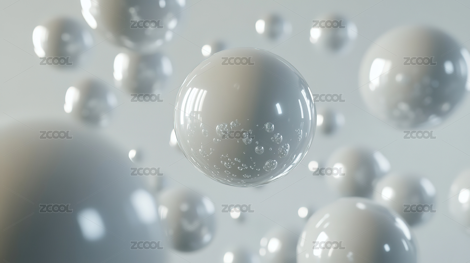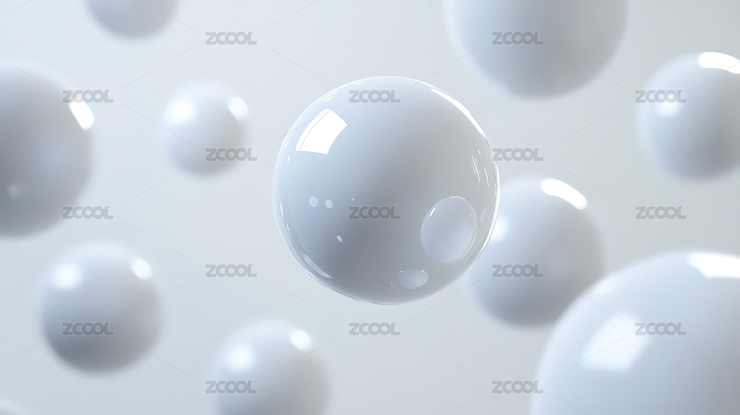 悬浮白色透明球体画面