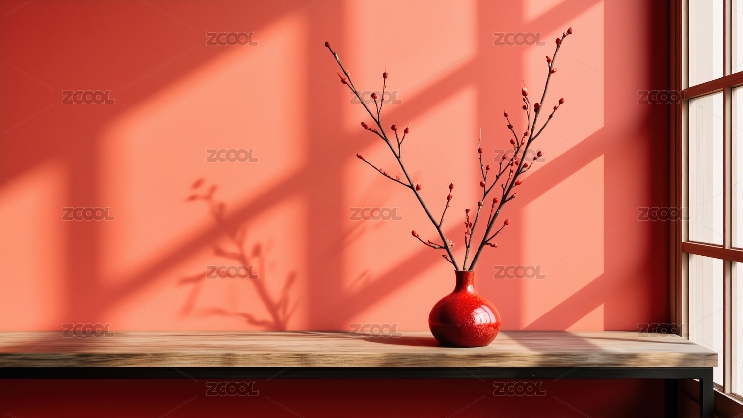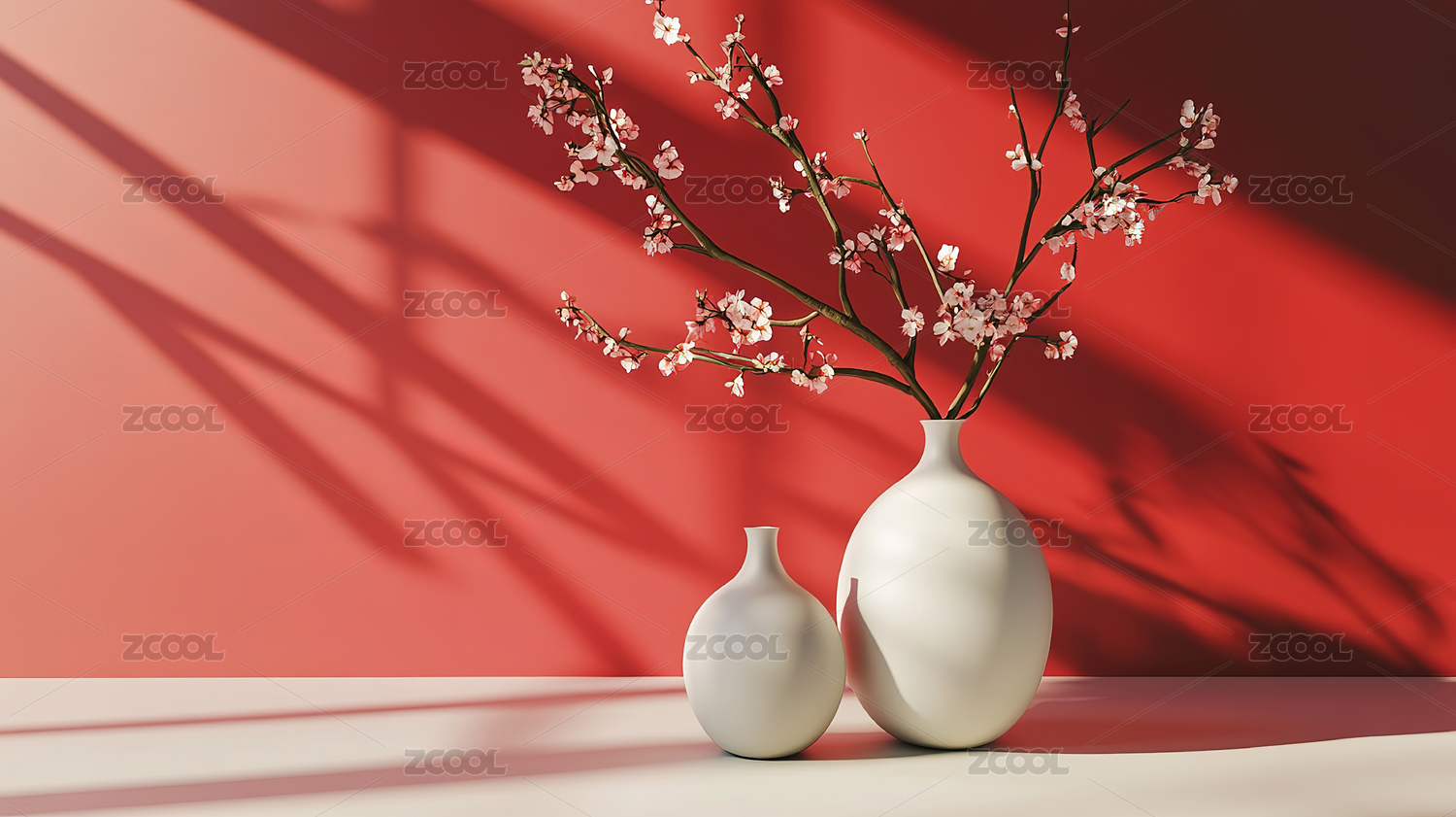 红色背景下的花瓶和烛台