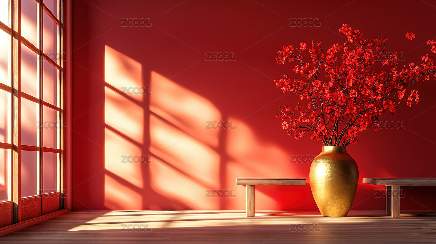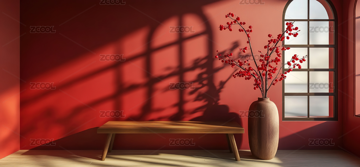 传统红墙长桌场景海报背景