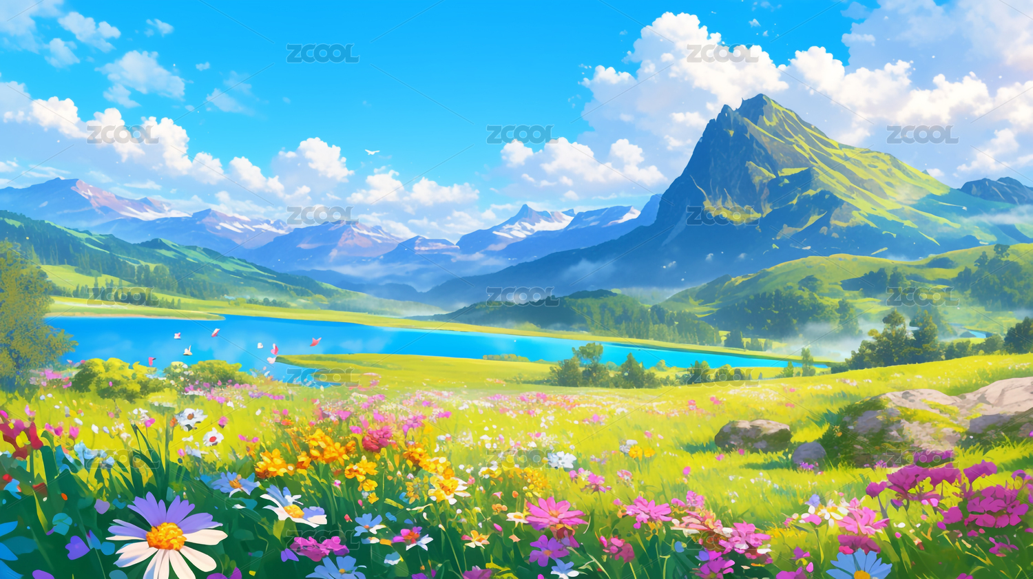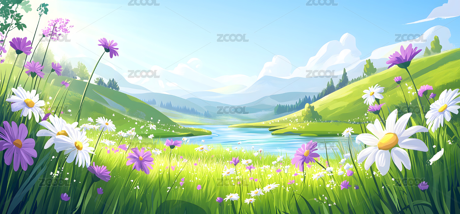 草原上的花海背景风景