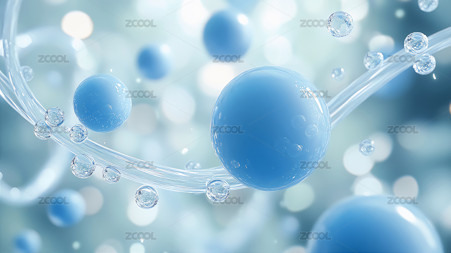 梦幻粉色泡泡在柔和蓝光中漂浮