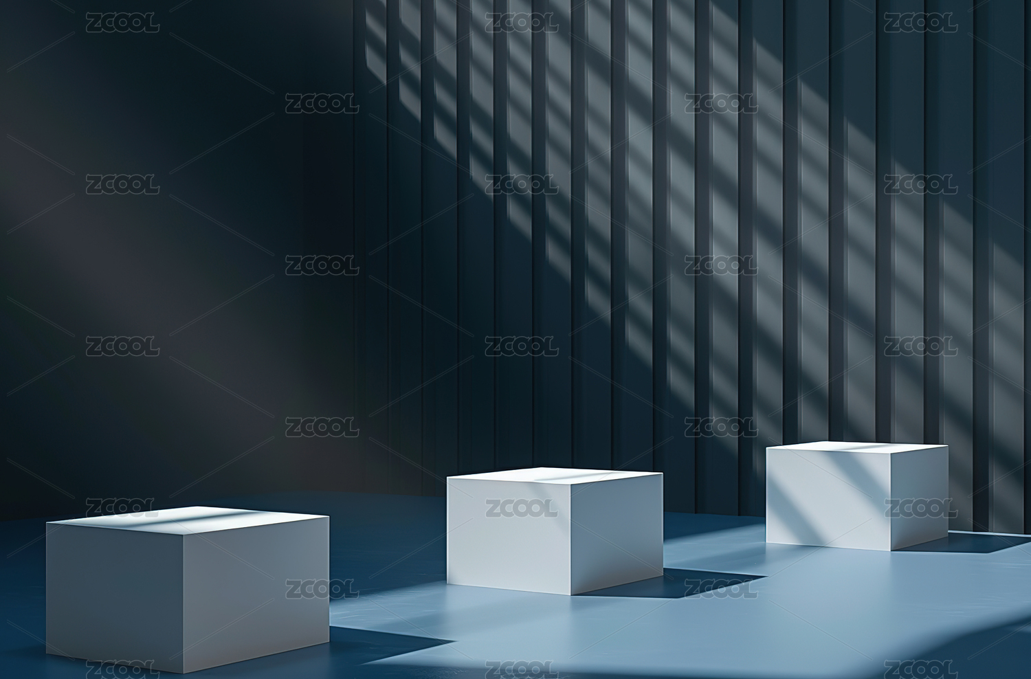 蓝色圆柱体展示台设计