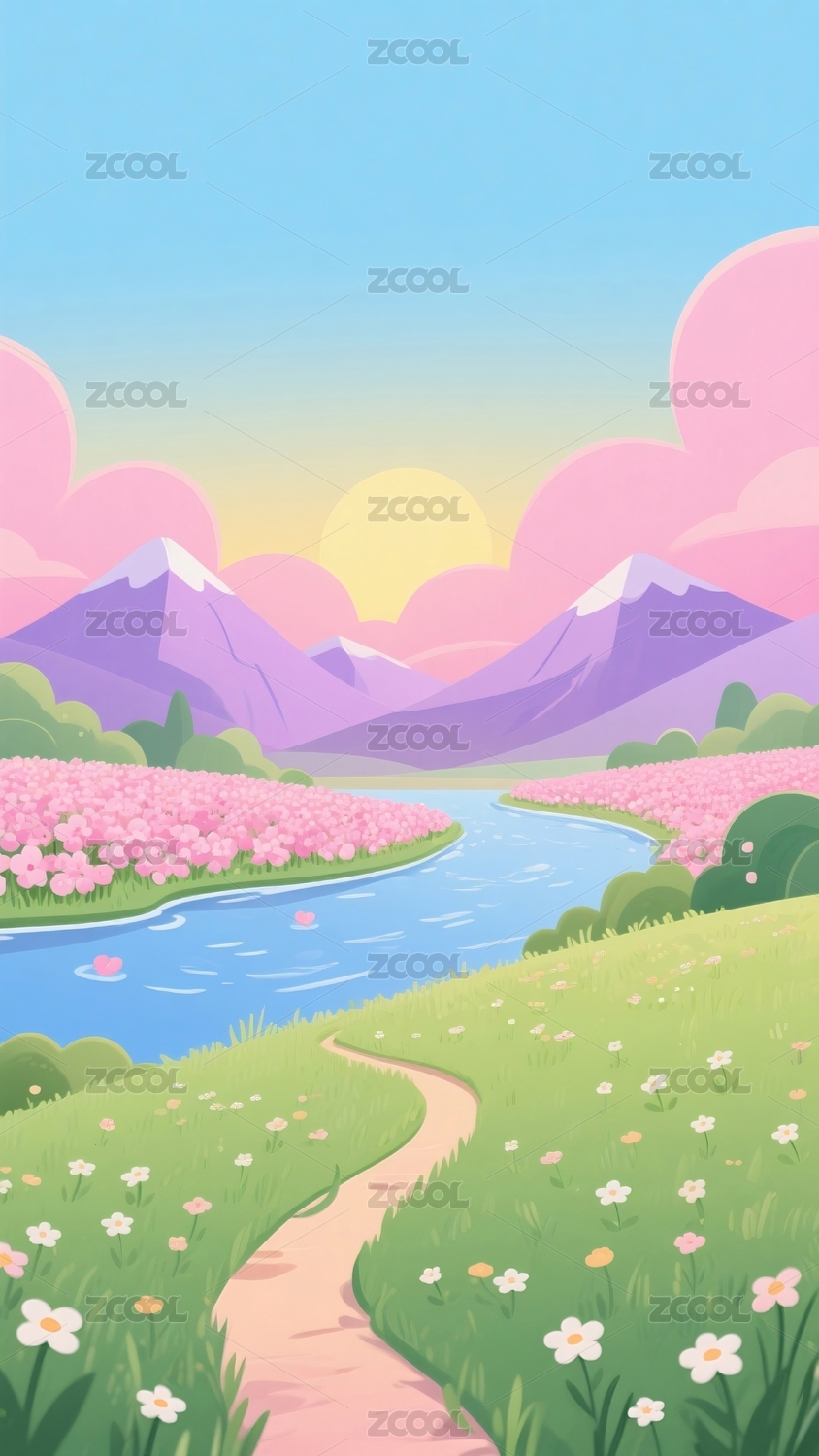 唯美的卡通春天风景插画背景