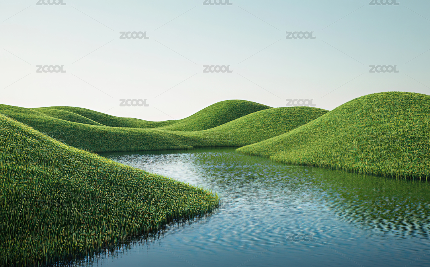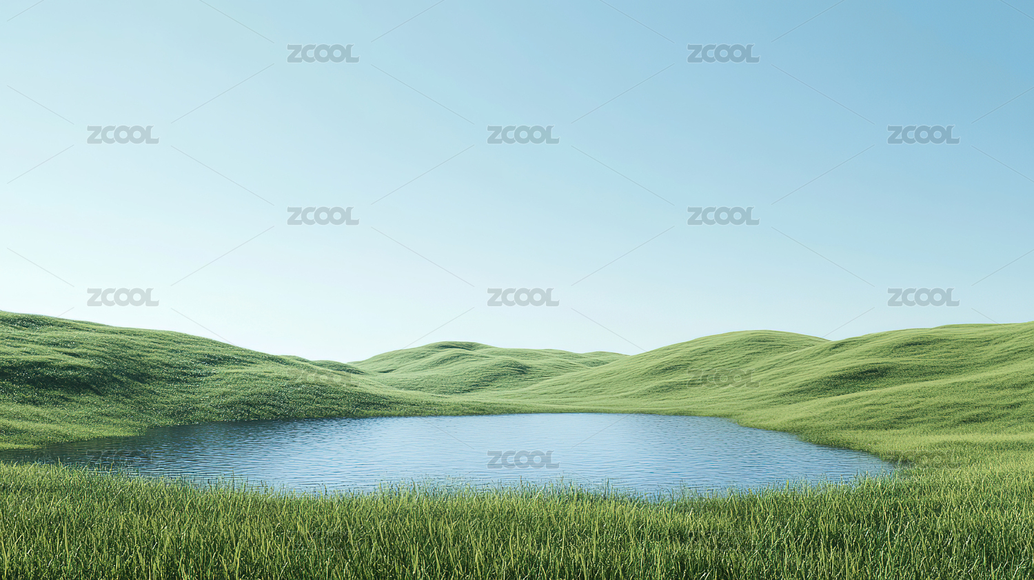 绿色的草地和湖