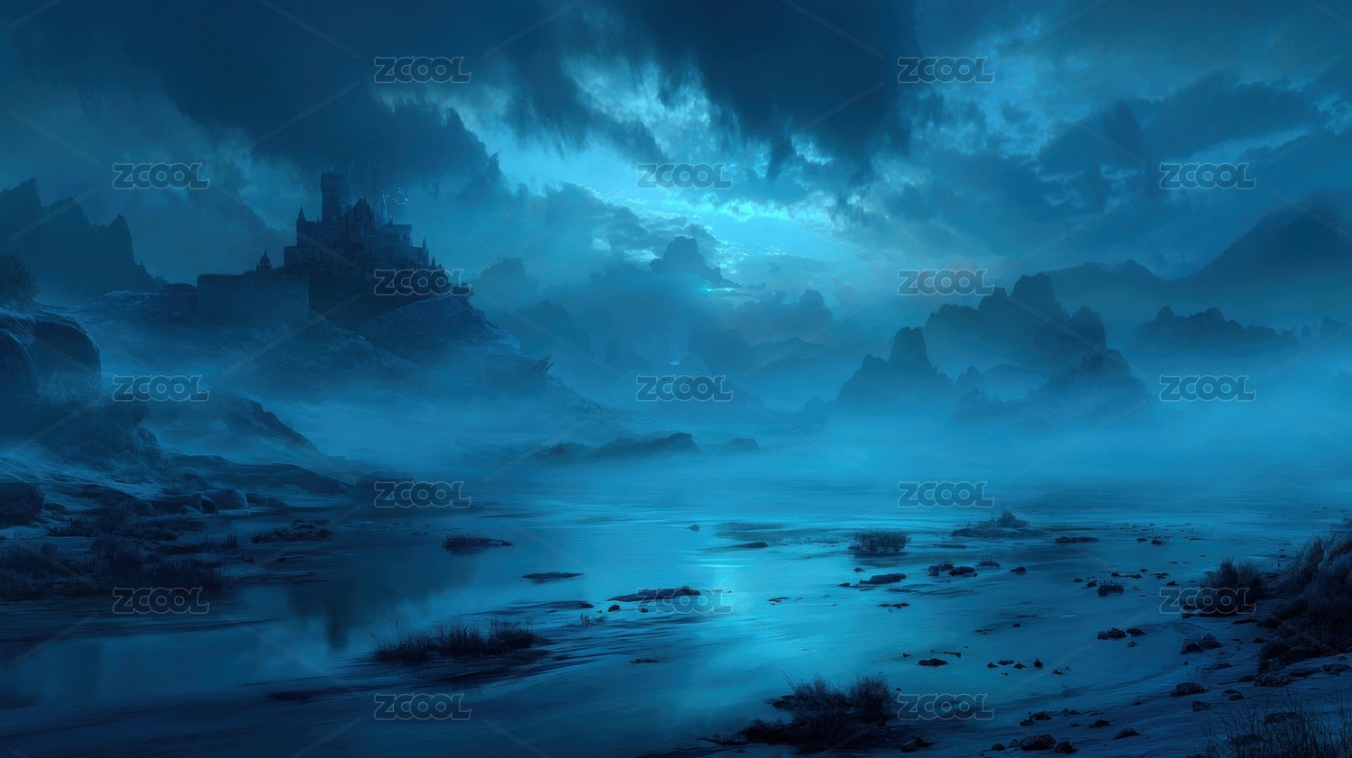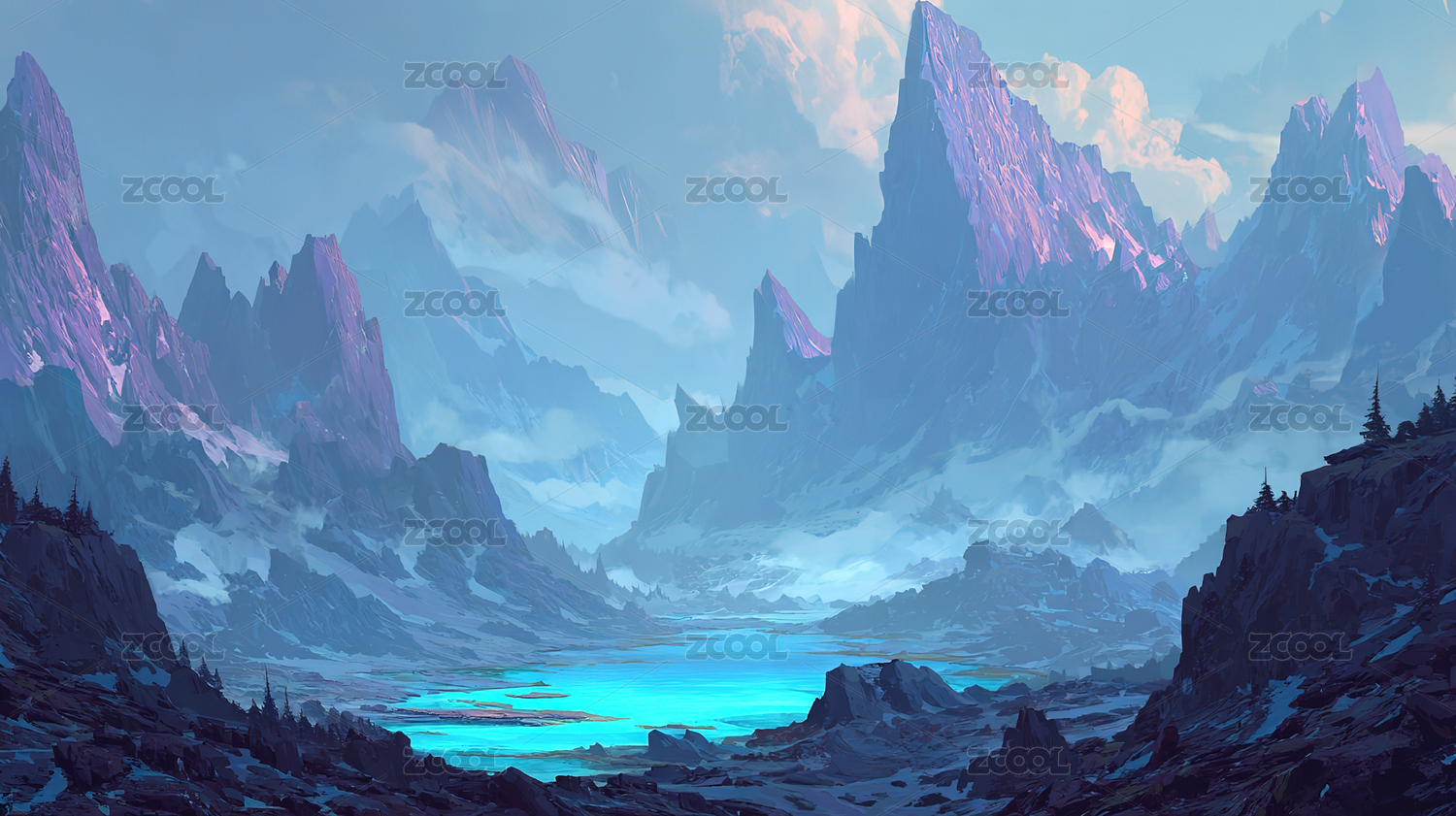 码科技梦幻雪山风景横版海报墙纸网页端背景