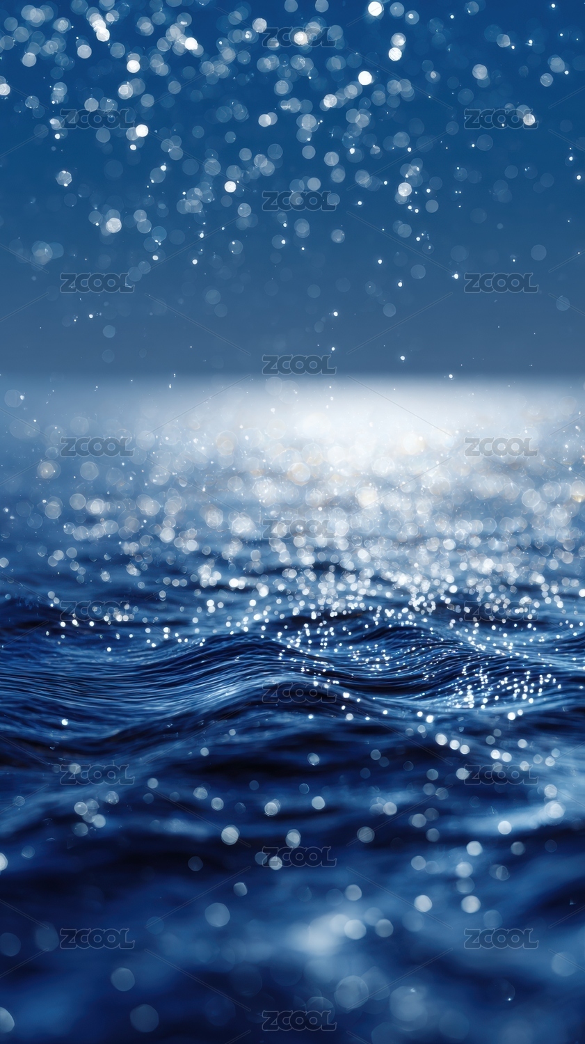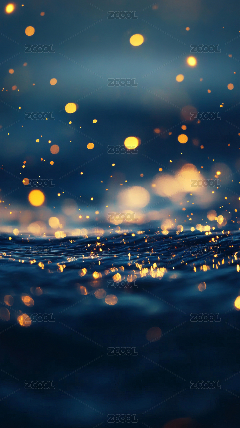 深蓝海面波光粼粼,金色光点闪耀,唯美浪漫