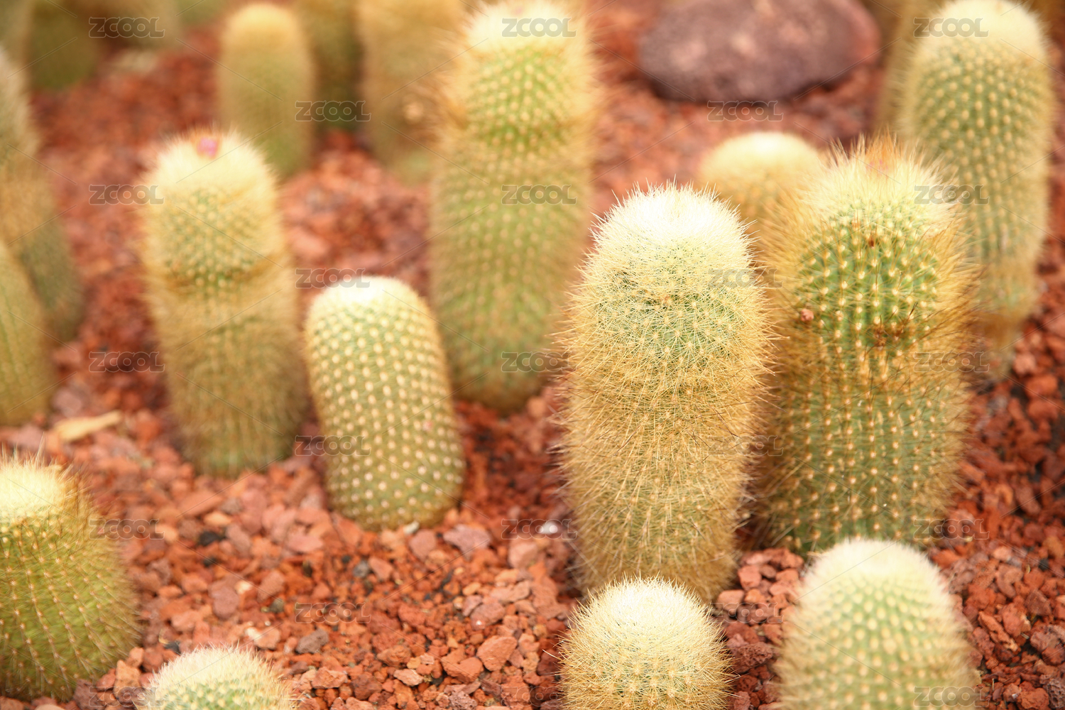 盆栽中一丛带有锋利尖刺的绿色多肉仙人球