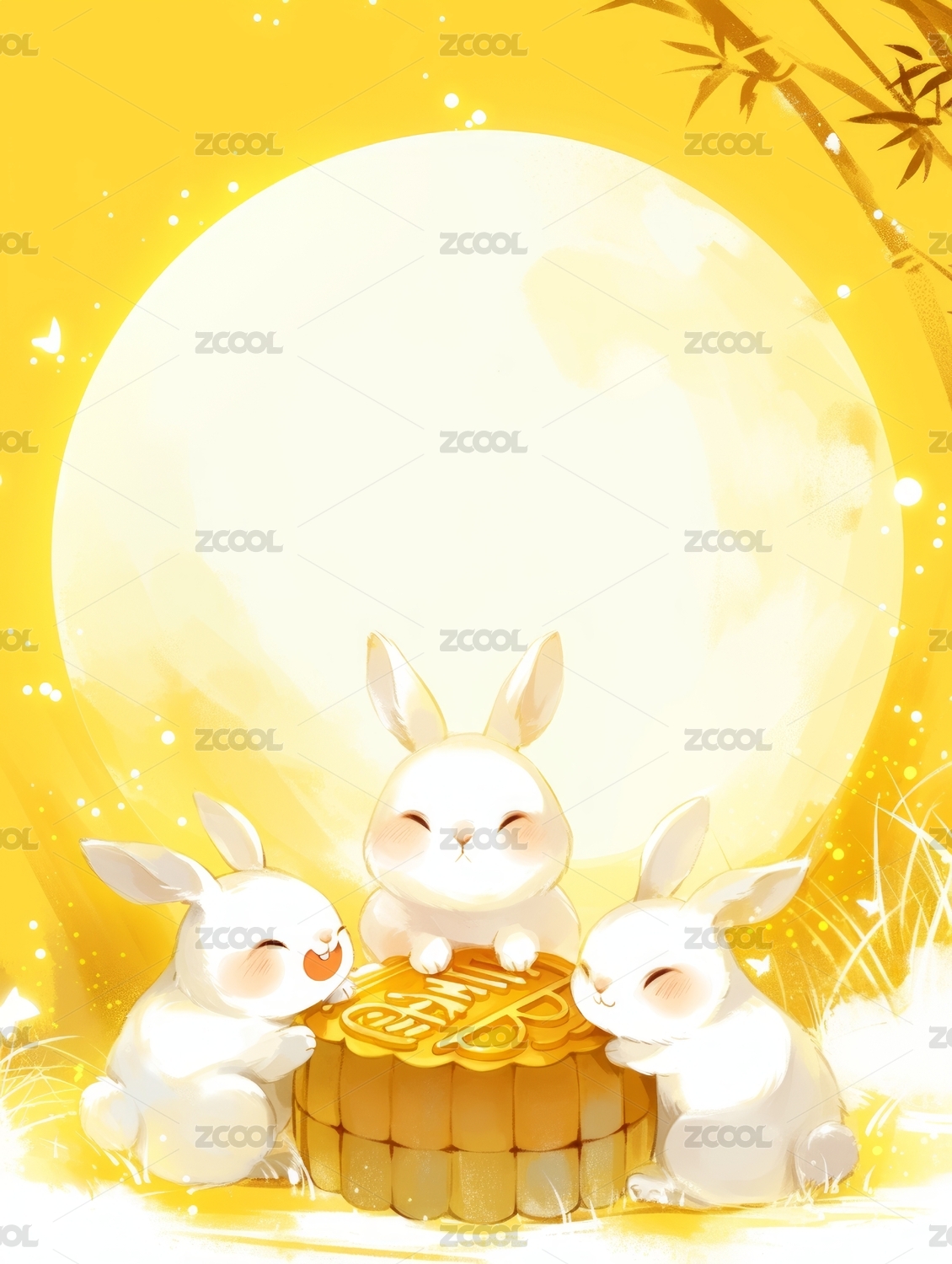 月夜云间双兔伴,浪漫国风意境浓
