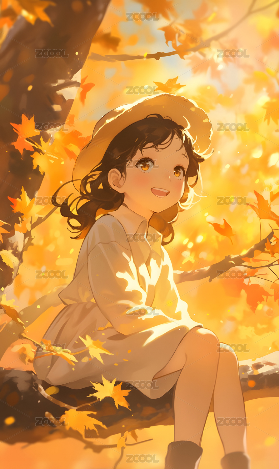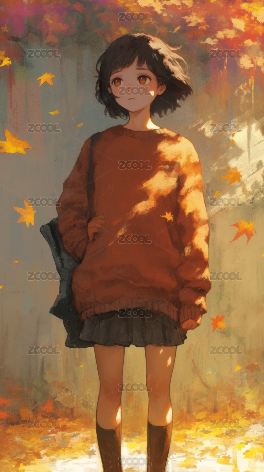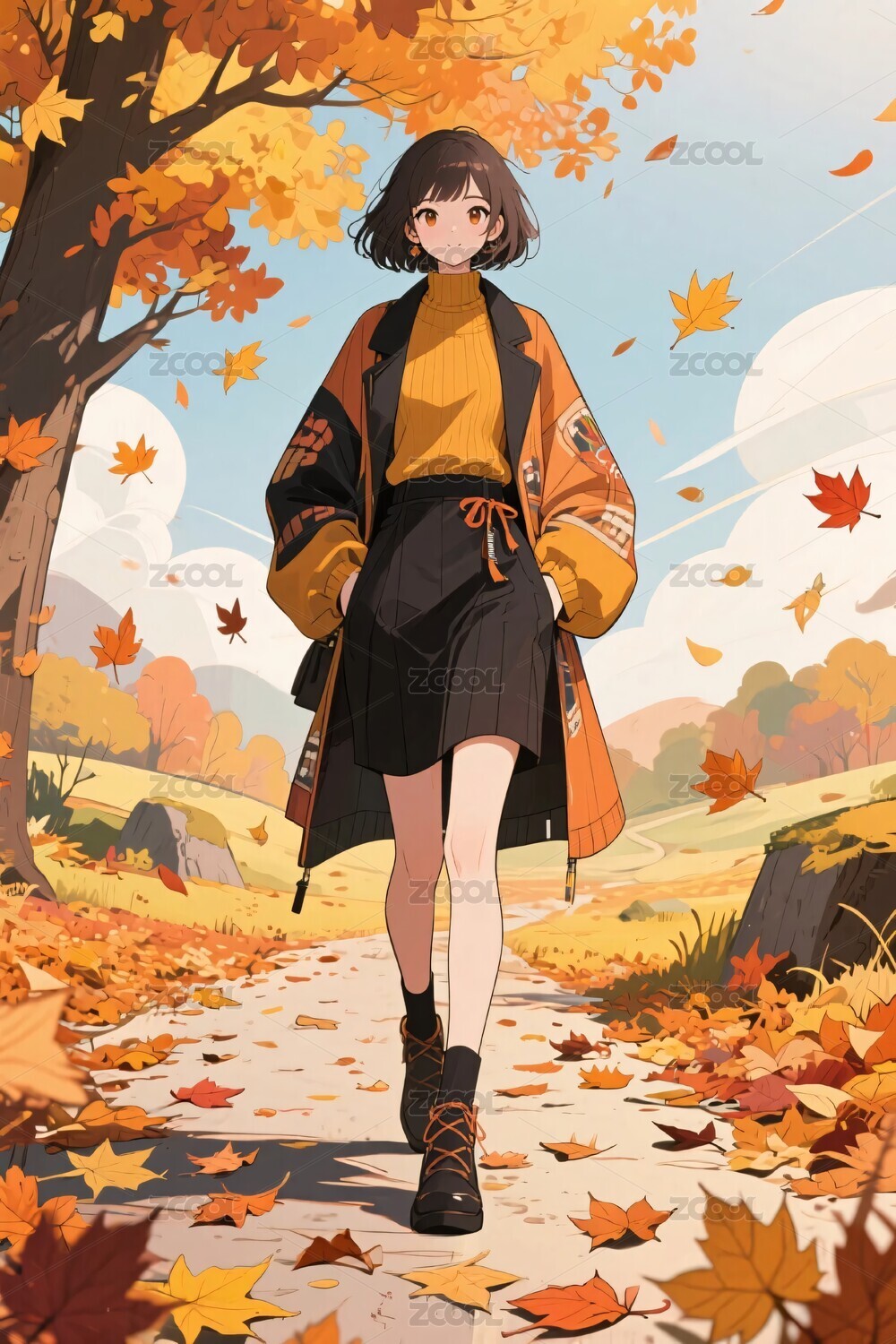 少女,人,秋季,秋天,插画,风景,风光,旅行,旅游,户外