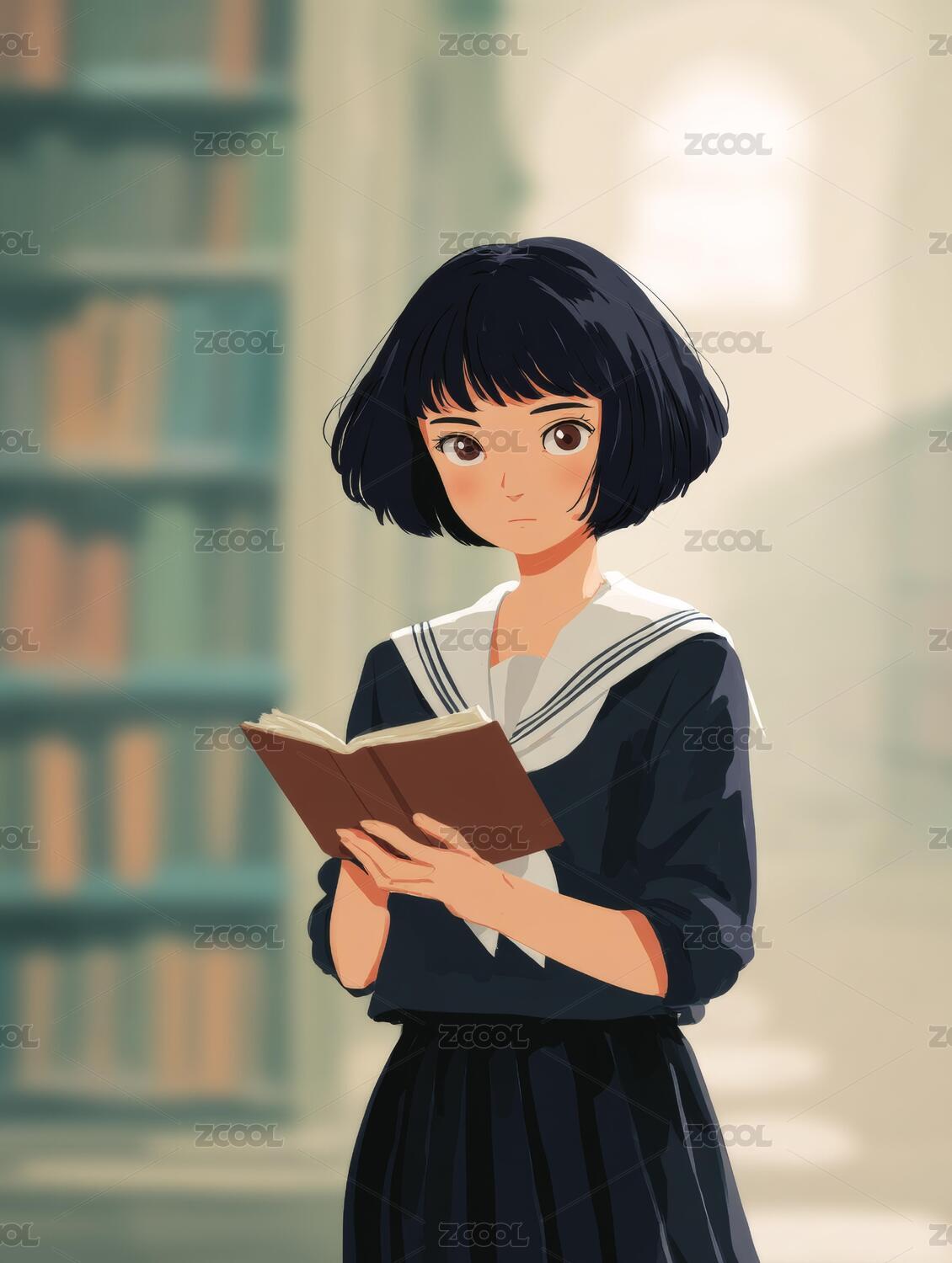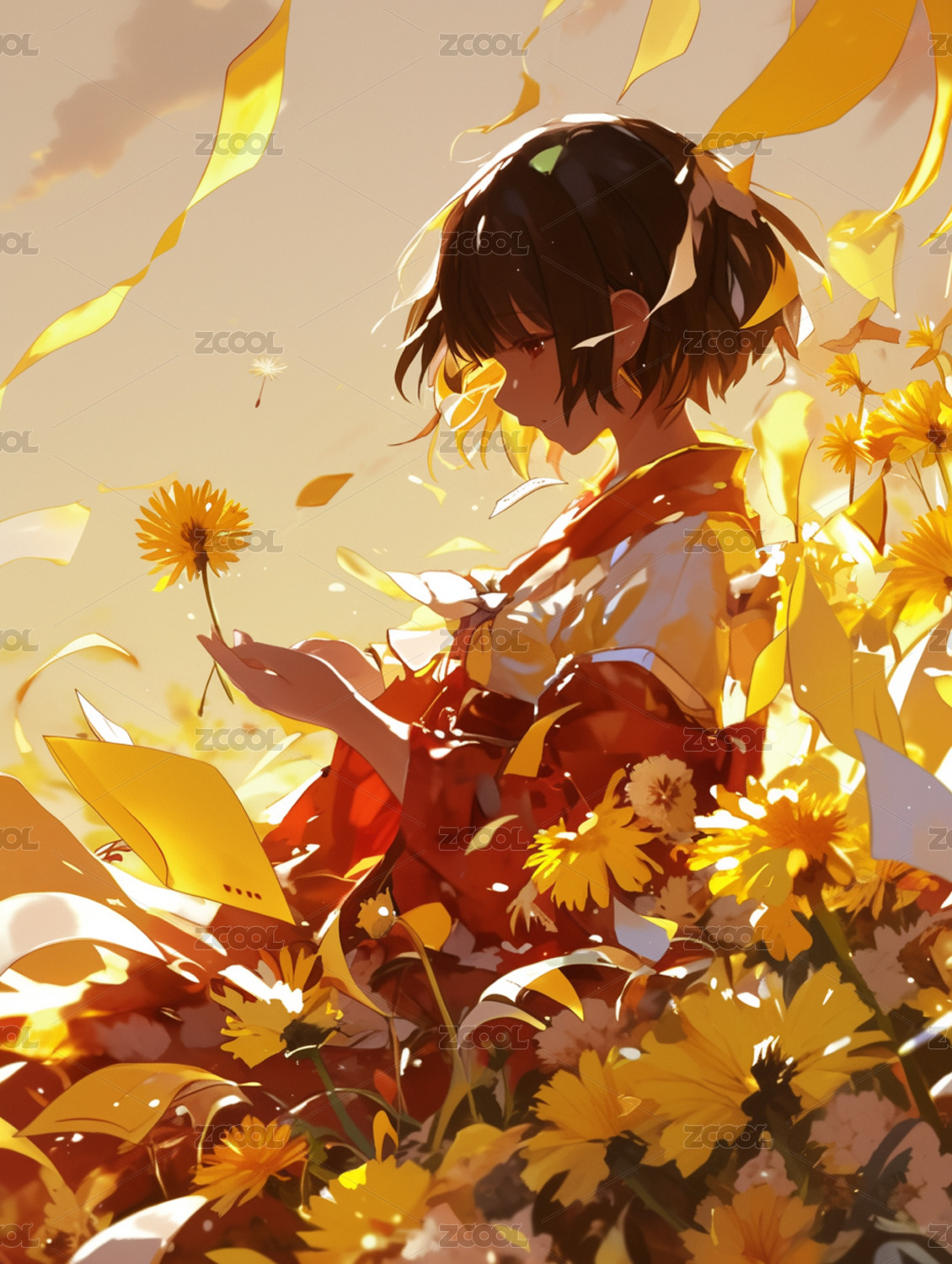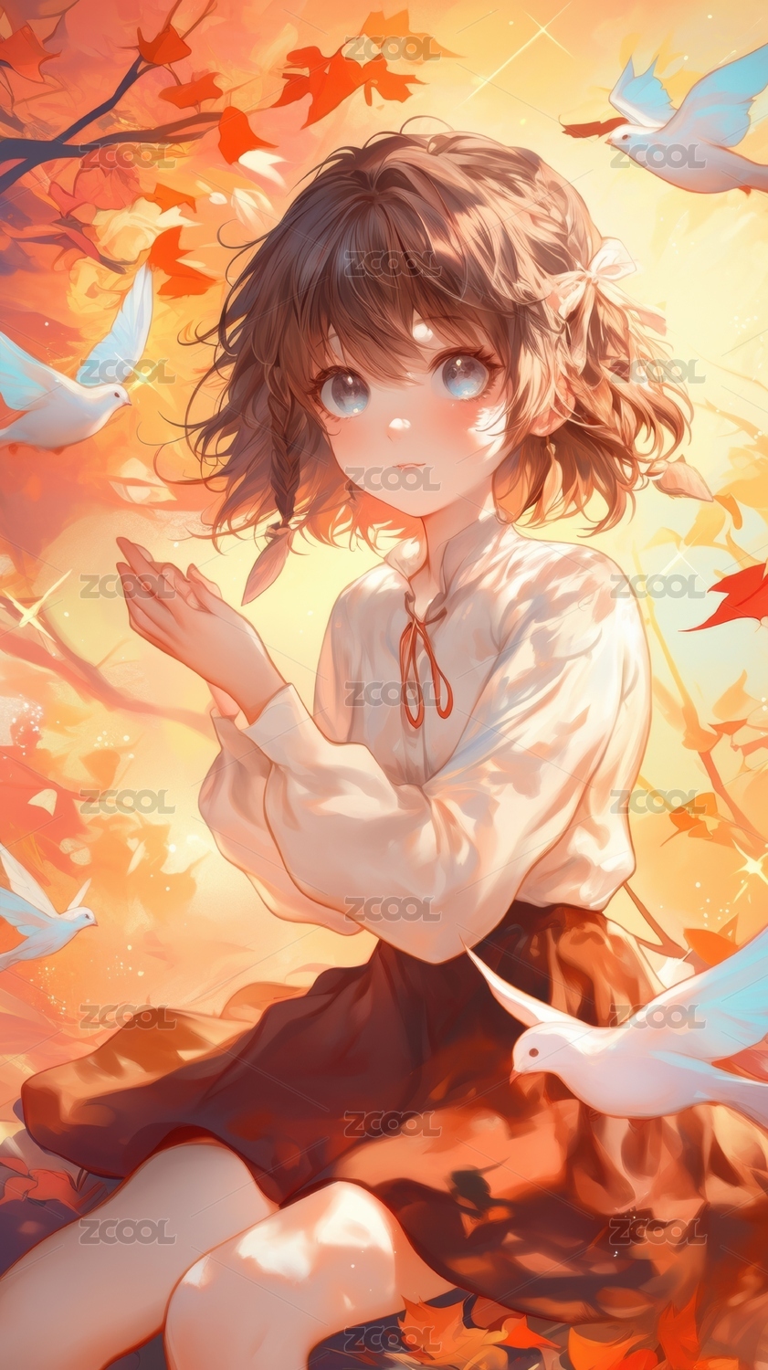 少女,人,秋季,秋天,插画,风景,风光,旅行,旅游,户外