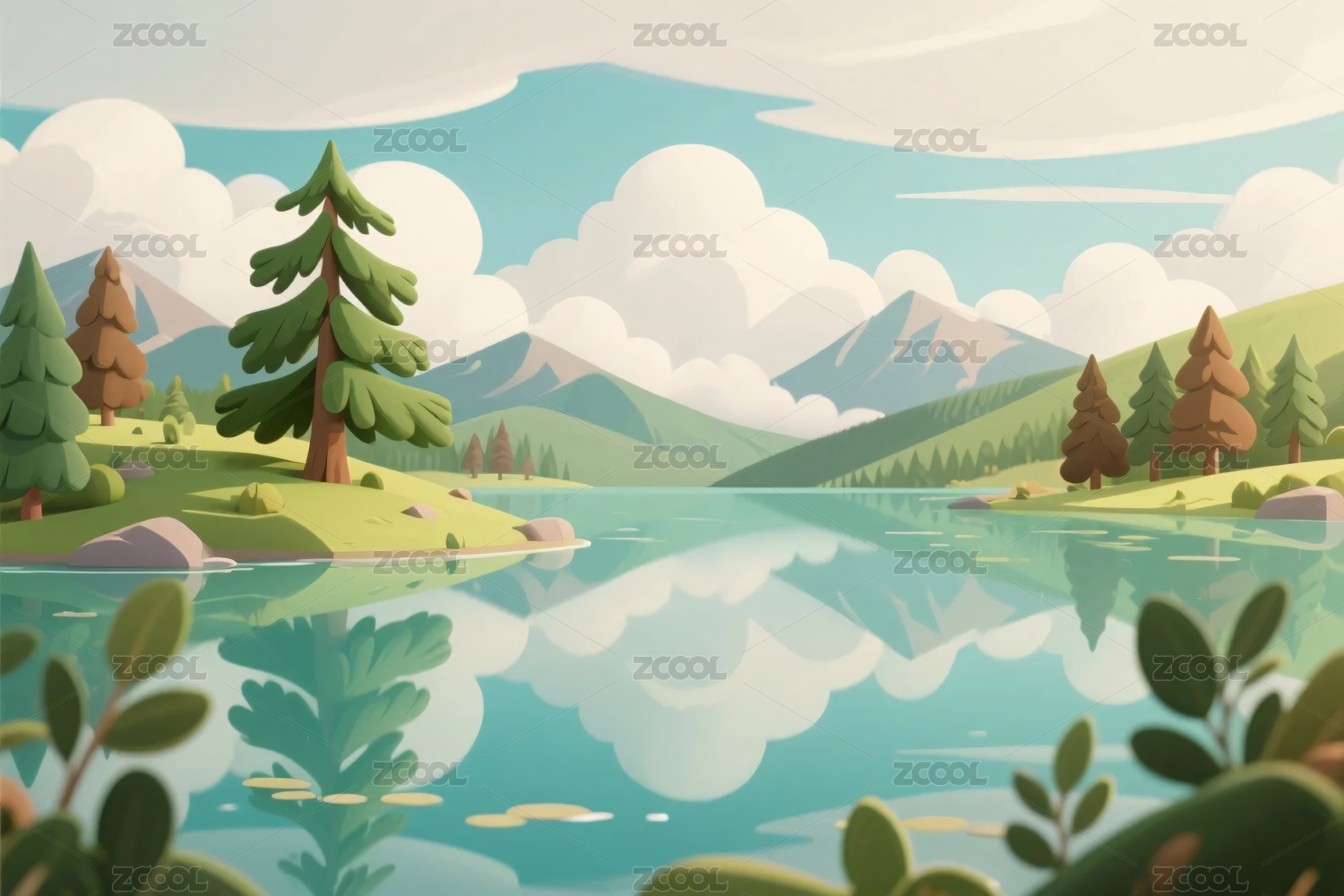 自然,风景,山水,户外,环境,森林,3D,渲染,卡通,可爱风