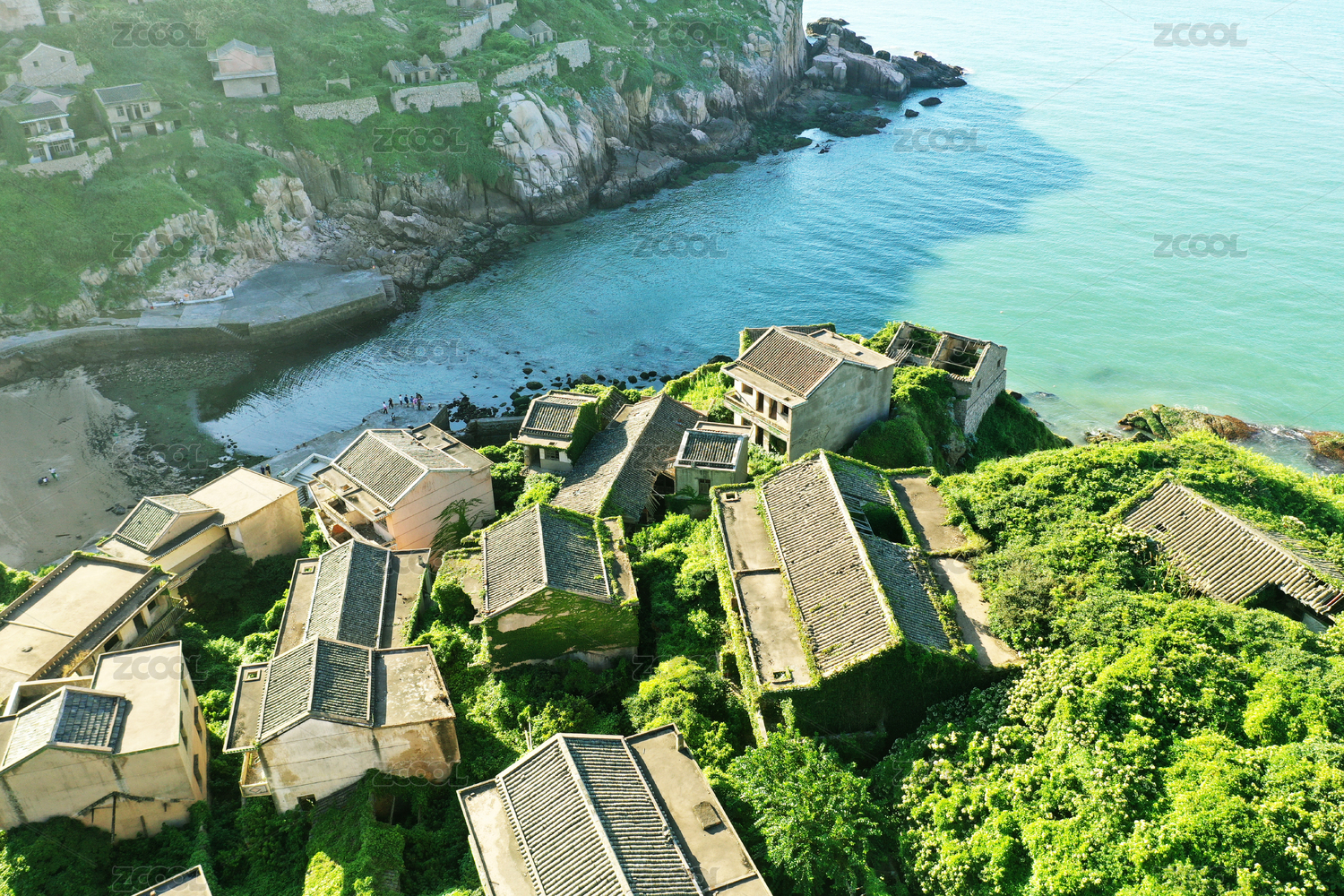浙江嵊泗枸杞岛旅游地标风光——无人村建筑景观