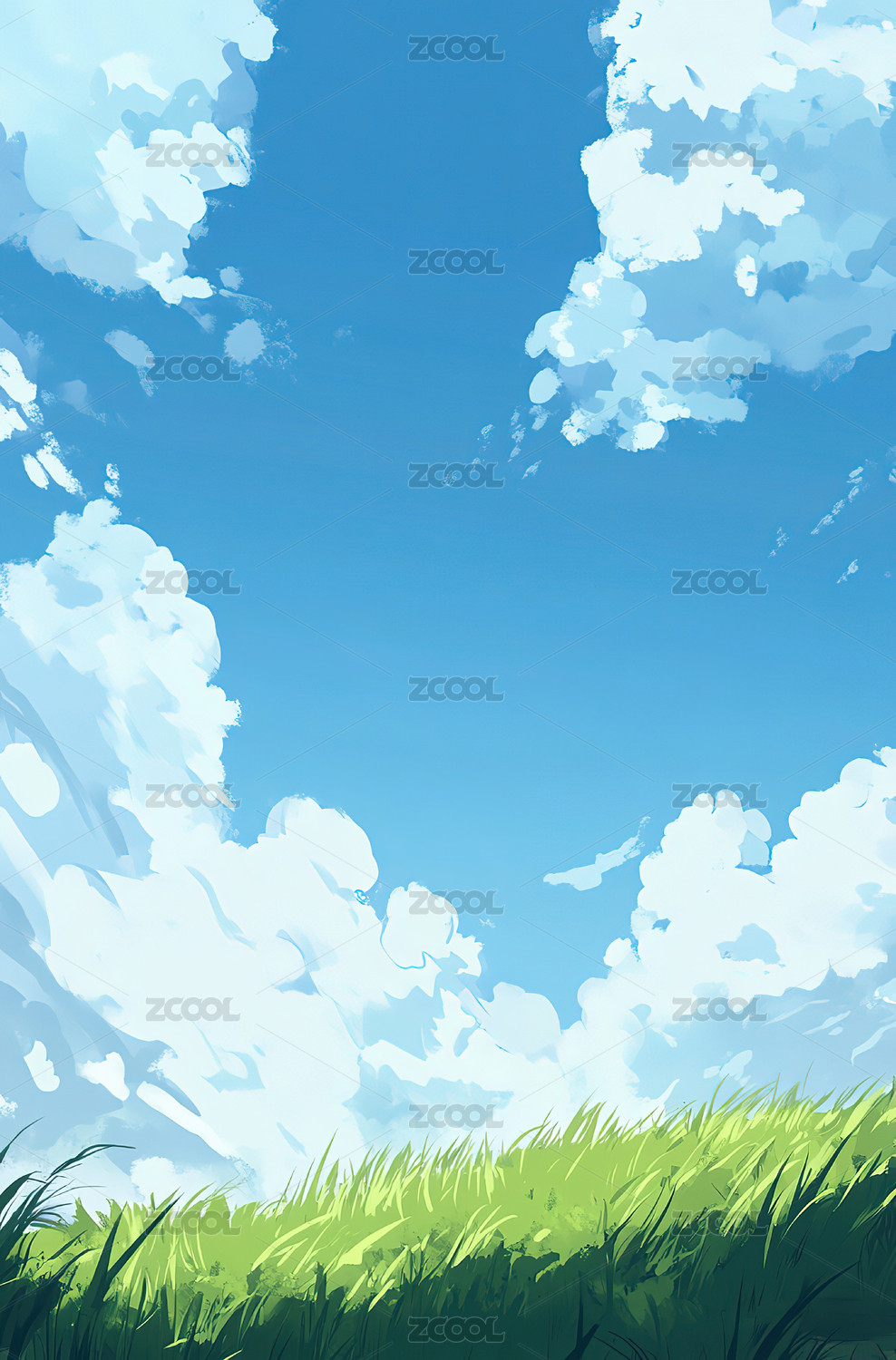 蓝天白云下的草地