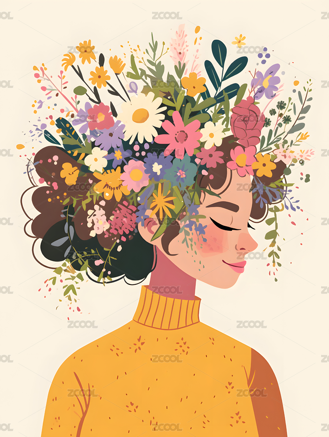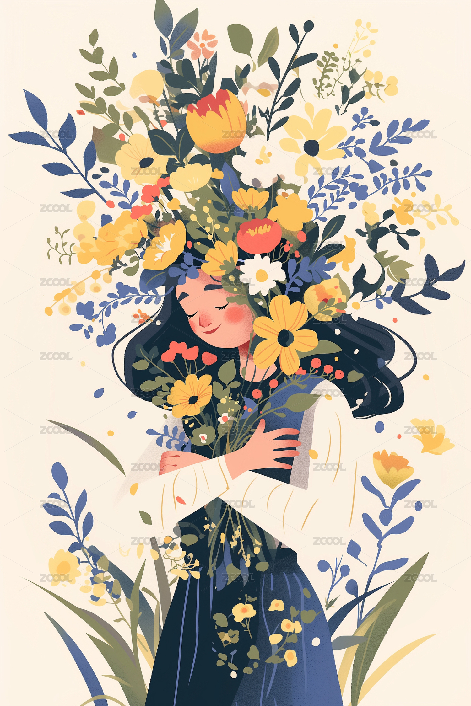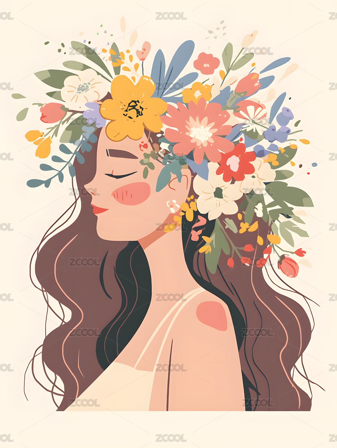 midjourney,女性,女神节,妇女节,花朵,花卉,花环,女神,自然,爱