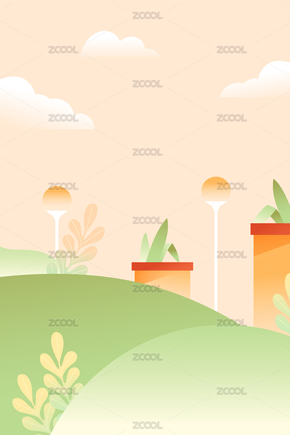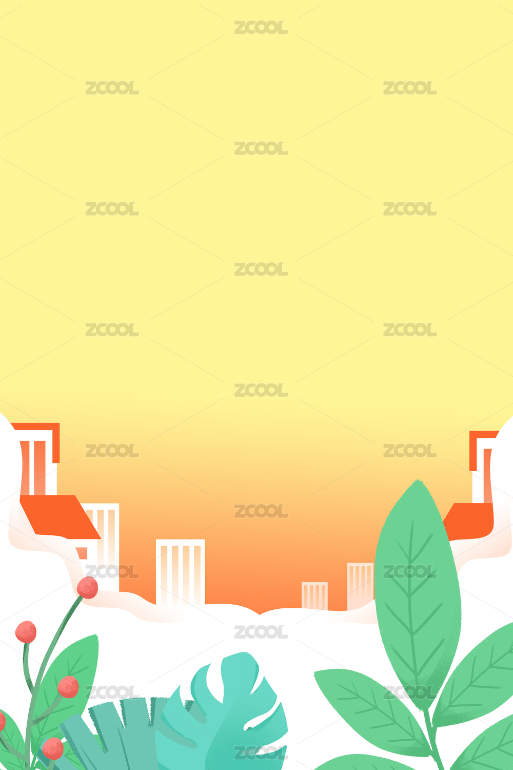 渐变,植物,没有人,背景,场景,黄色,插画,插图,素材,手绘