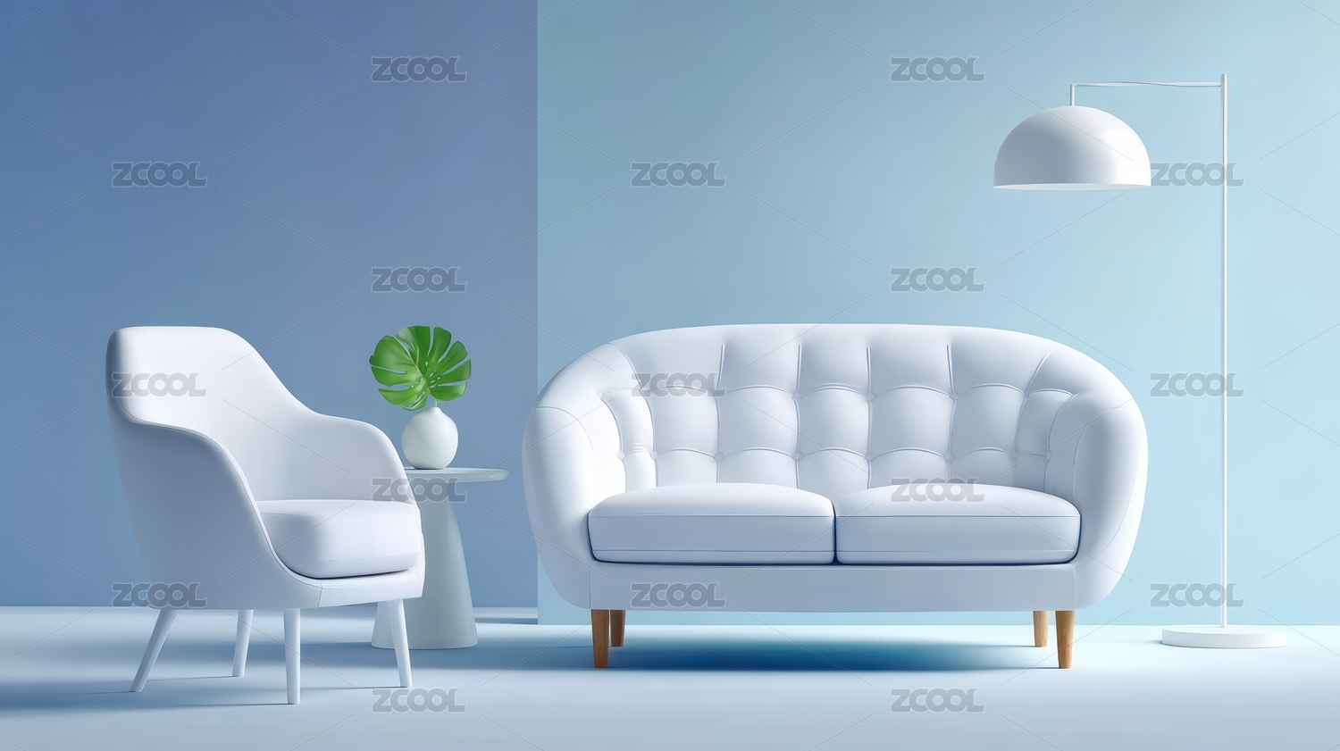 蓝色沙发与落地灯室内场景
